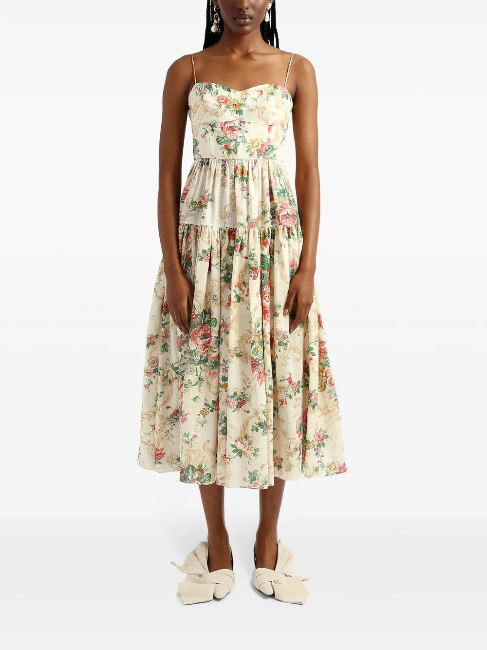 Льняное платье с цветочным принтом ERDEM, нейтральный 79 204₽