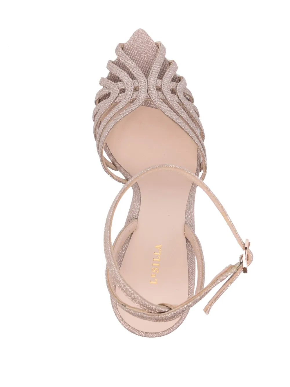 Подробнее о товаре: • бежевый • телячья кожа • деталь с блестками • пряжка с выгравированным логотипом • логотип на подошве • конструкция с внешним каркасом • открытый носок • заостренный носок • ремешок на щиколотке с пряжкой • кожаная стелька с логотипом • каблук на высокой шпильке • кожаная подошва • сегментированная резиновая подошва • В комплект входит мешок-пыльник для хранения.