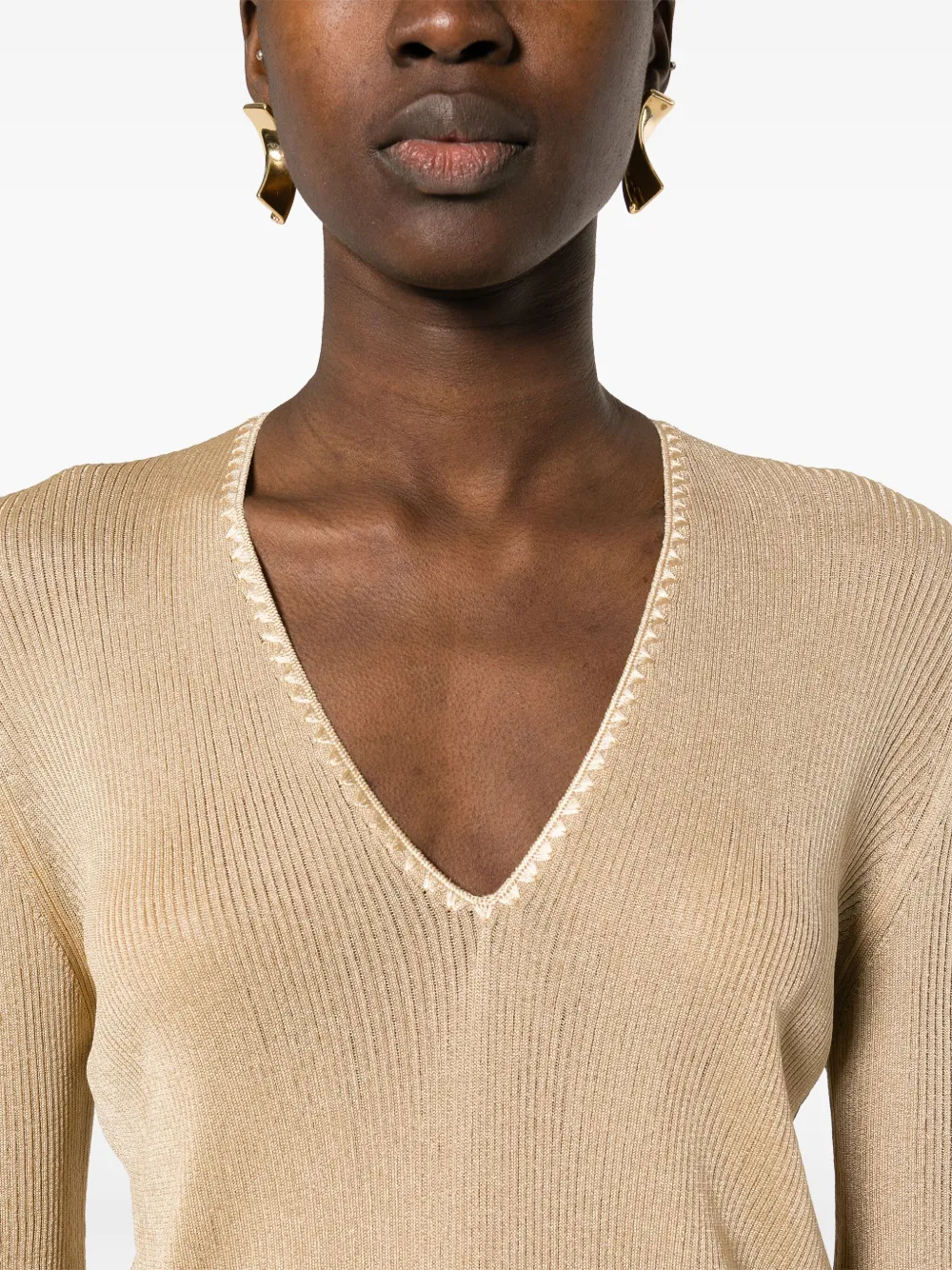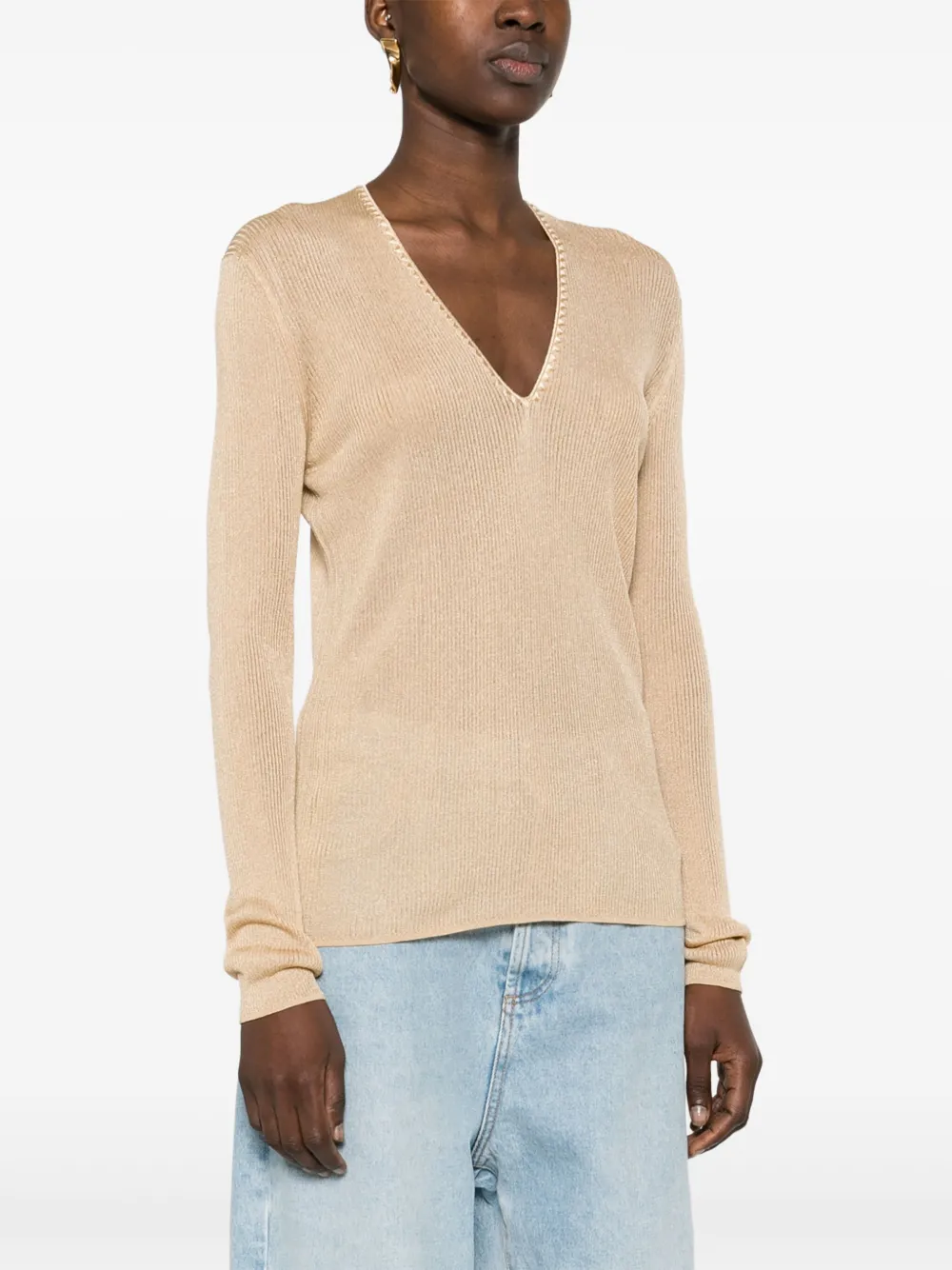 Джемпер в рубчик с V-образным вырезом TOM FORD, нейтральный