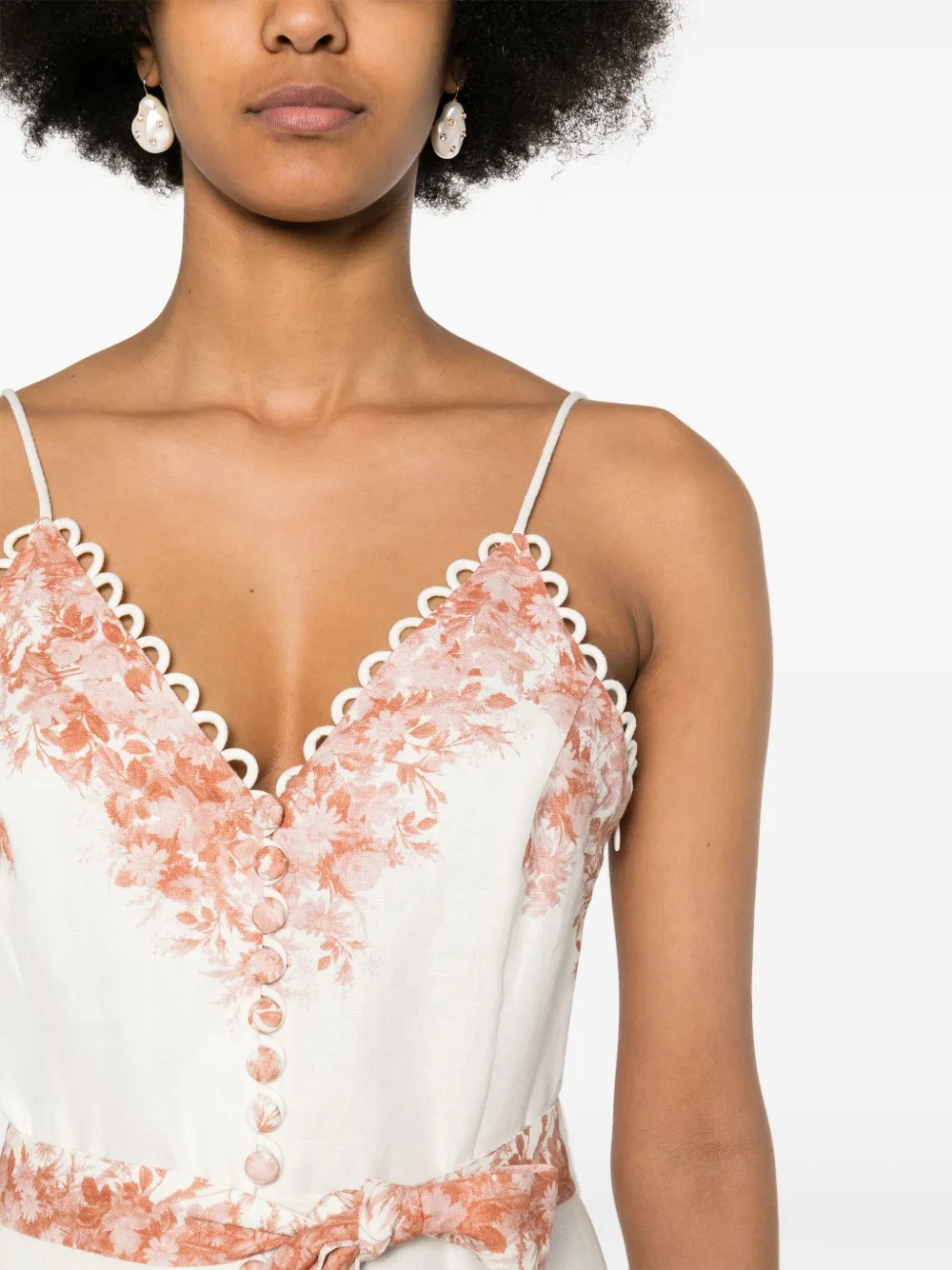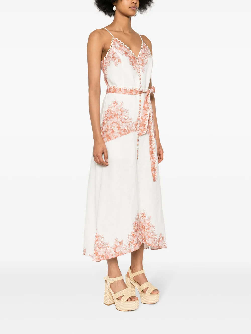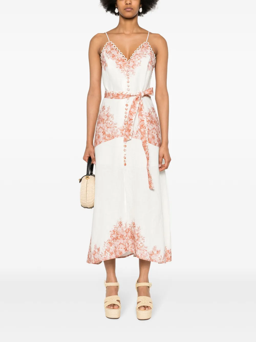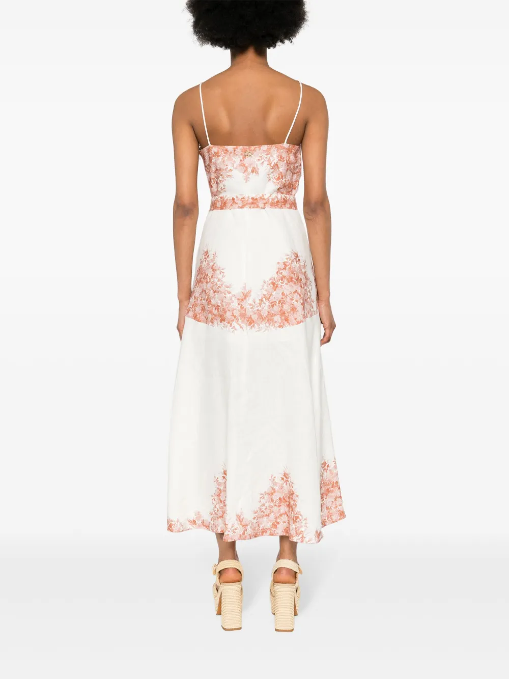 Льняное платье миди с цветочным принтом TWINSET, нейтральный