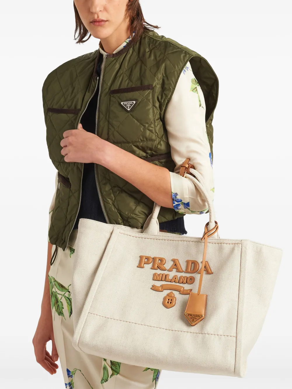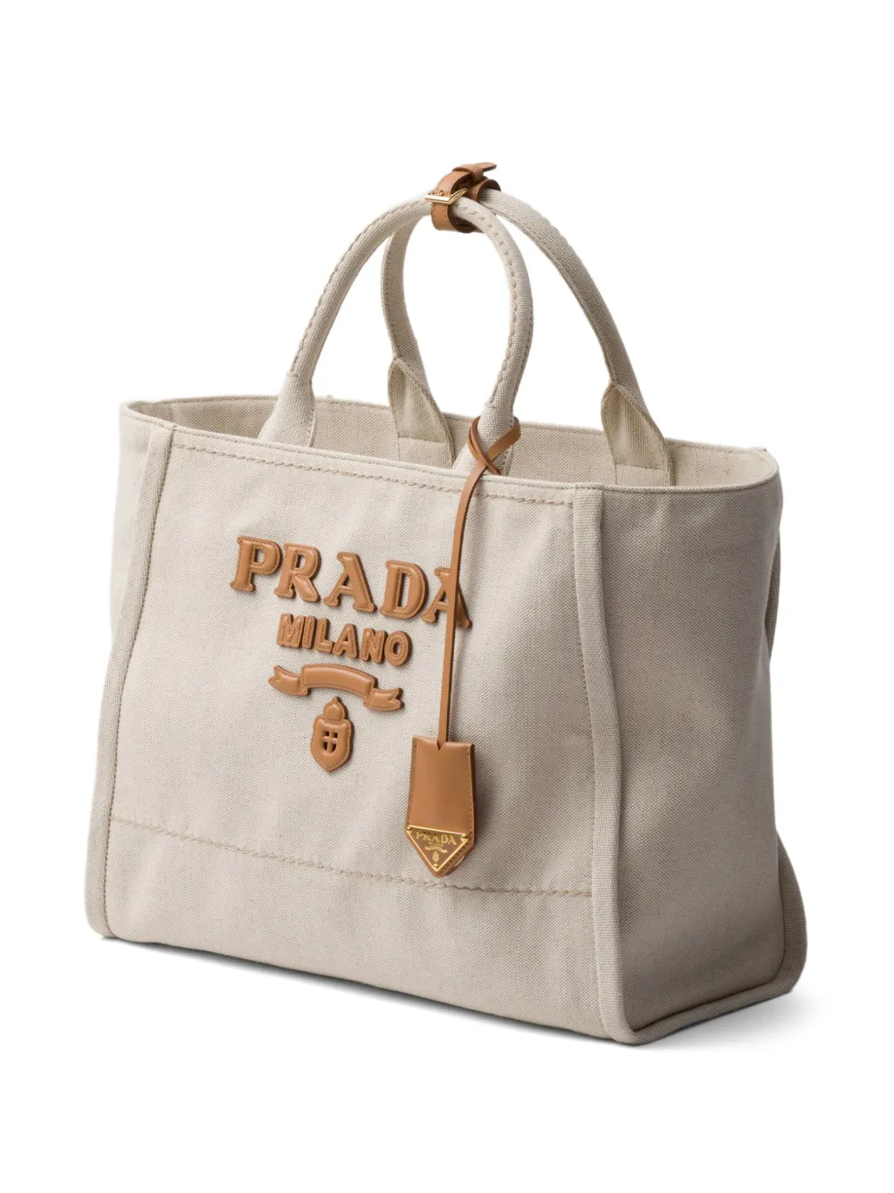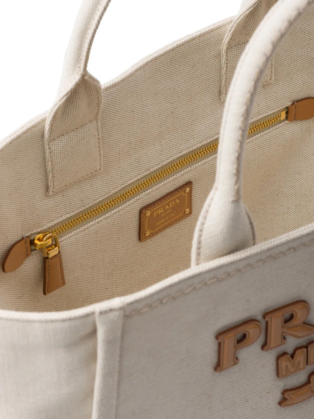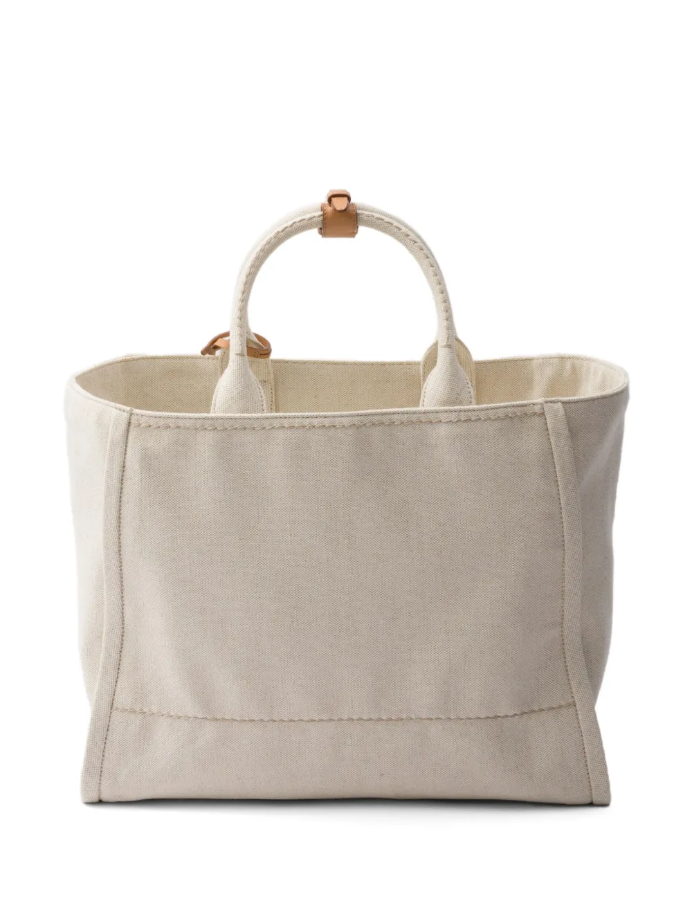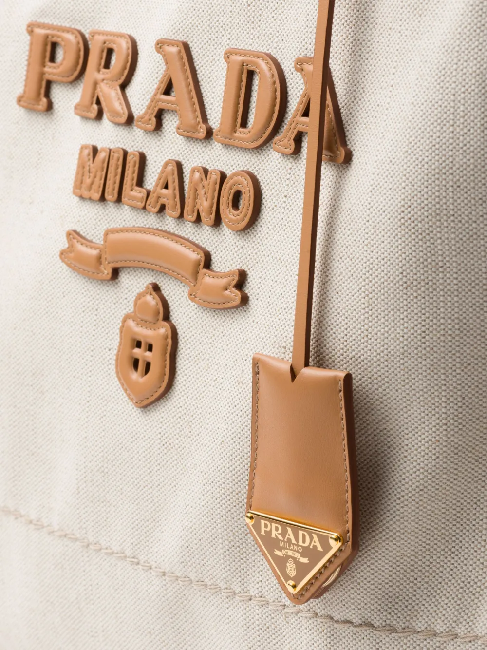 Большая сумка-тоут с логотипом Prada, нейтральный