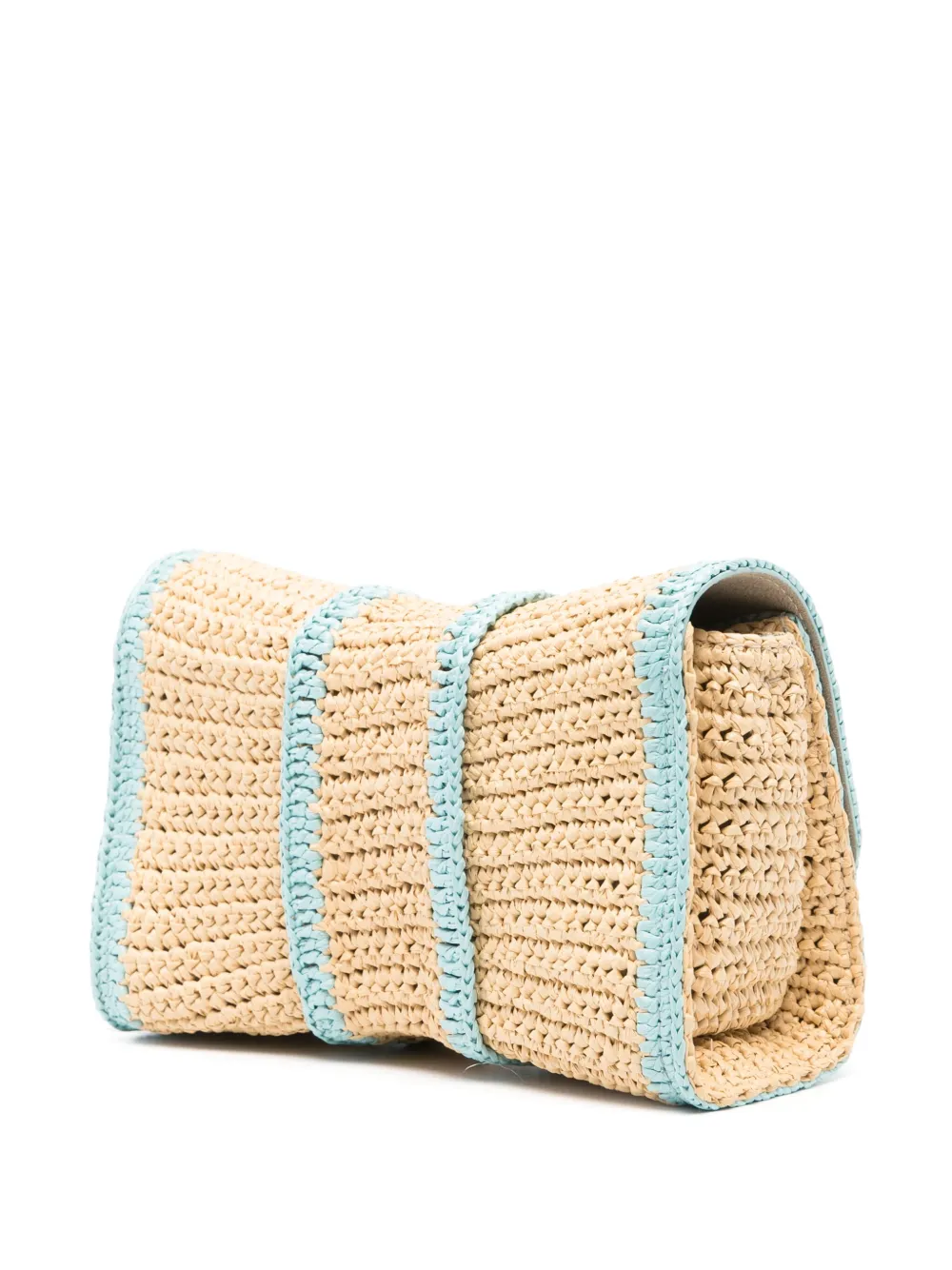 Подробнее о товаре: • светло-бежевый/голубой • рафия • кожаная отделка • переплетенный дизайн • контрастная отделка • съемный регулируемый ремень на плечо • основное отделение • внутренний накладной карман • внутренняя вставка с логотипом • цельная подкладка • золотистая фурнитура • откидной верх с застежкой • В комплект входит мешок-пыльник для хранения.