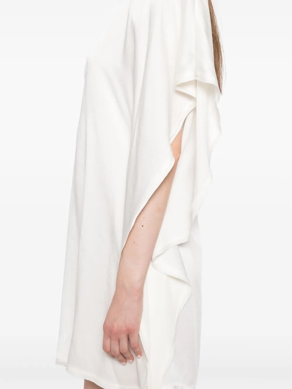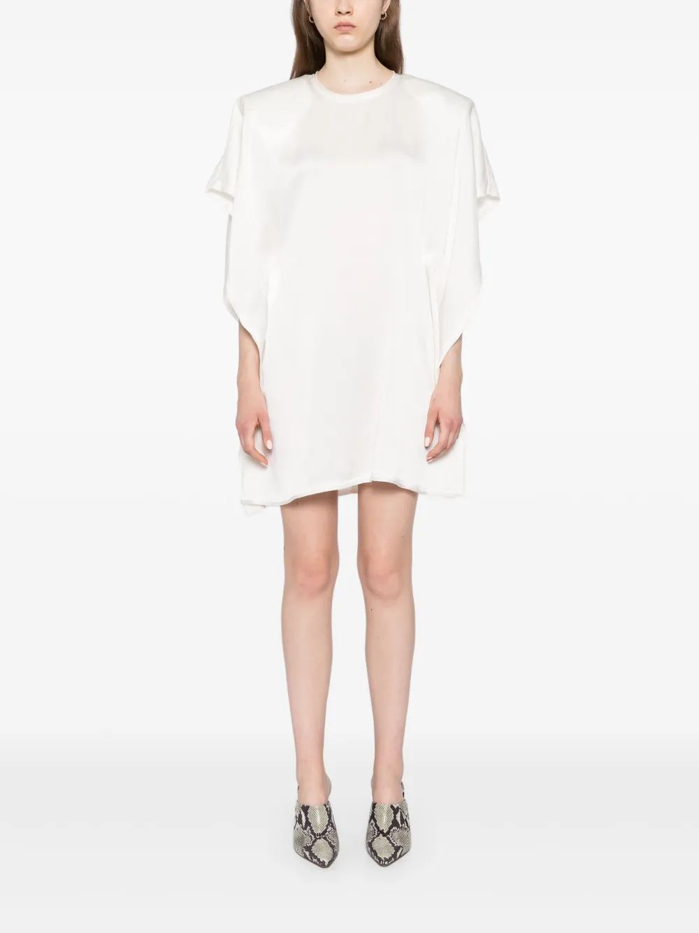 Подробнее о товаре: • кремовый • сатиновая фактура • короткие рукава с драпировкой • потайная застежка на крючках и молнии сзади • круглый вырез • подплечники • длина до бедер • Данный товар содержит более 50% сертифицированных древесных материалов. Материалы изготовления сертифицированы. Это гарантирует, что сырье заготовлено в ответственных лесных хозяйствах, которые минимизируют вырубку лесов, обеспечивают справедливую заработную плату и условия труда, сохраняют биоразнообразие и уважают права локальных сообществ.