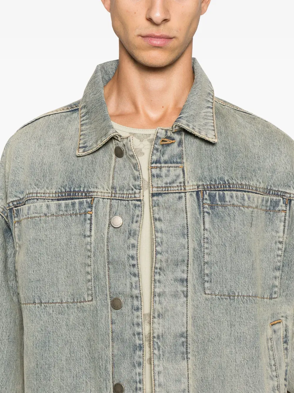 Подробнее о товаре: • индиго/бежевый • хлопок • деним • эффект кислотной стирки • эффект потертости • потайная пуговичная застежка спереди • классический воротник • приспущенные плечи • длинные рукава • манжеты на пуговицах • два накладных кармана на груди • два прорезных кармана сбоку • регулируемые ремешки на поясе • прямой подол • Это унисекс-модель. Обратите внимание, что для нее используется мужская размерная сетка.