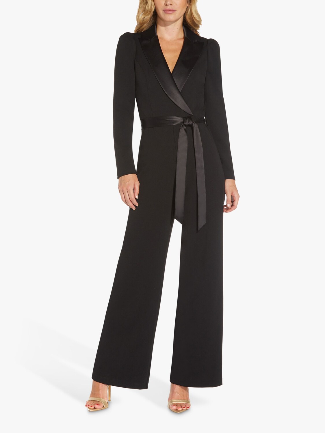 Adrianna Papell Вязаный комбинезон-смокинг из крепа, черный 25 697₽