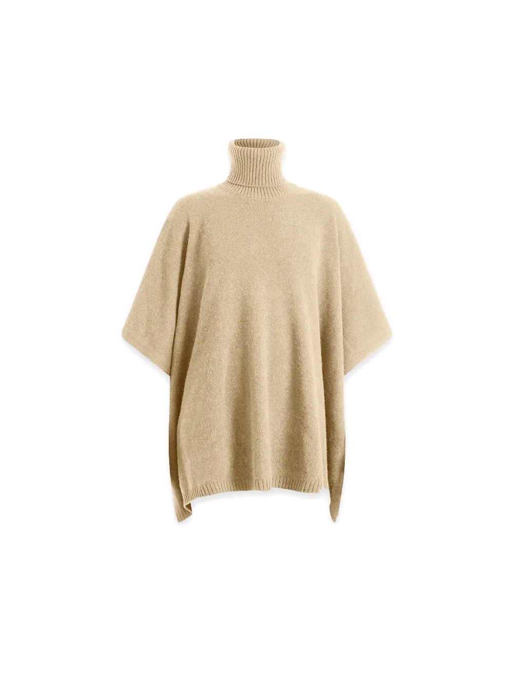 Бежевая водолазка с рукавами три четверти, прямой подол, кашемир