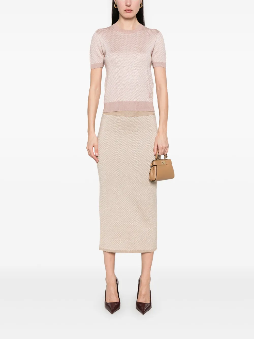 Юбка миди с логотипом FF FENDI, нейтральный