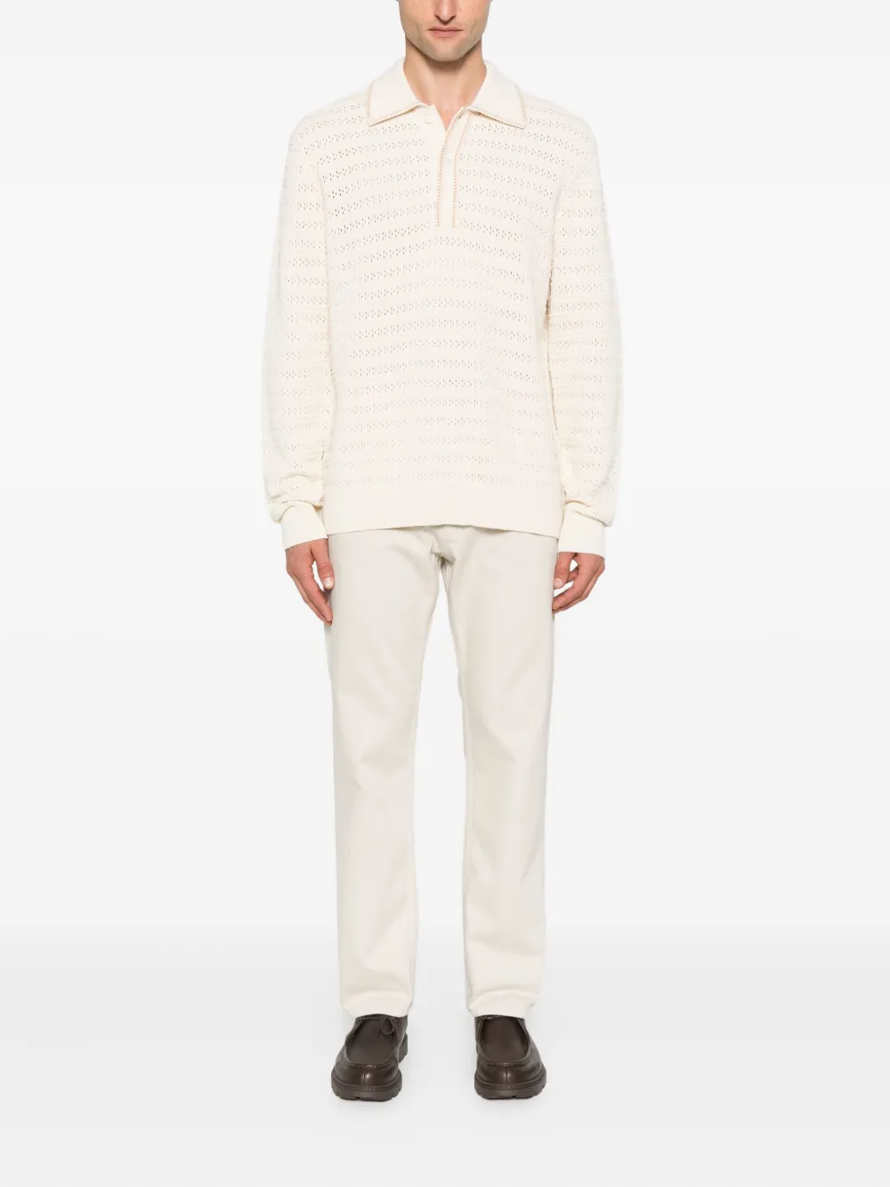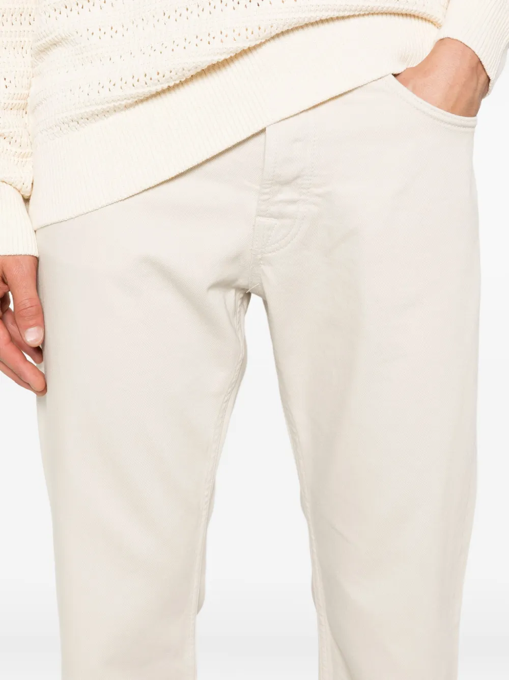Светло-бежевый, потайная застежка на пуговицы, классические пять карманов