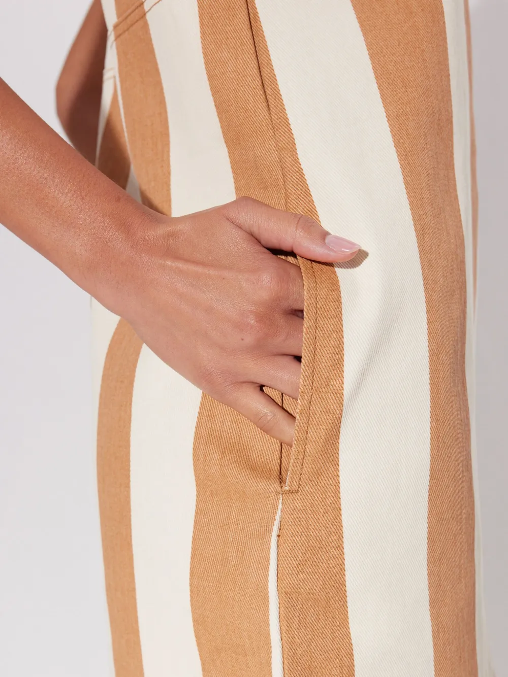 Светло-бежевая застежка-молния сбоку, квадратный вырез, без рукавов, принт с вертикальной полоской