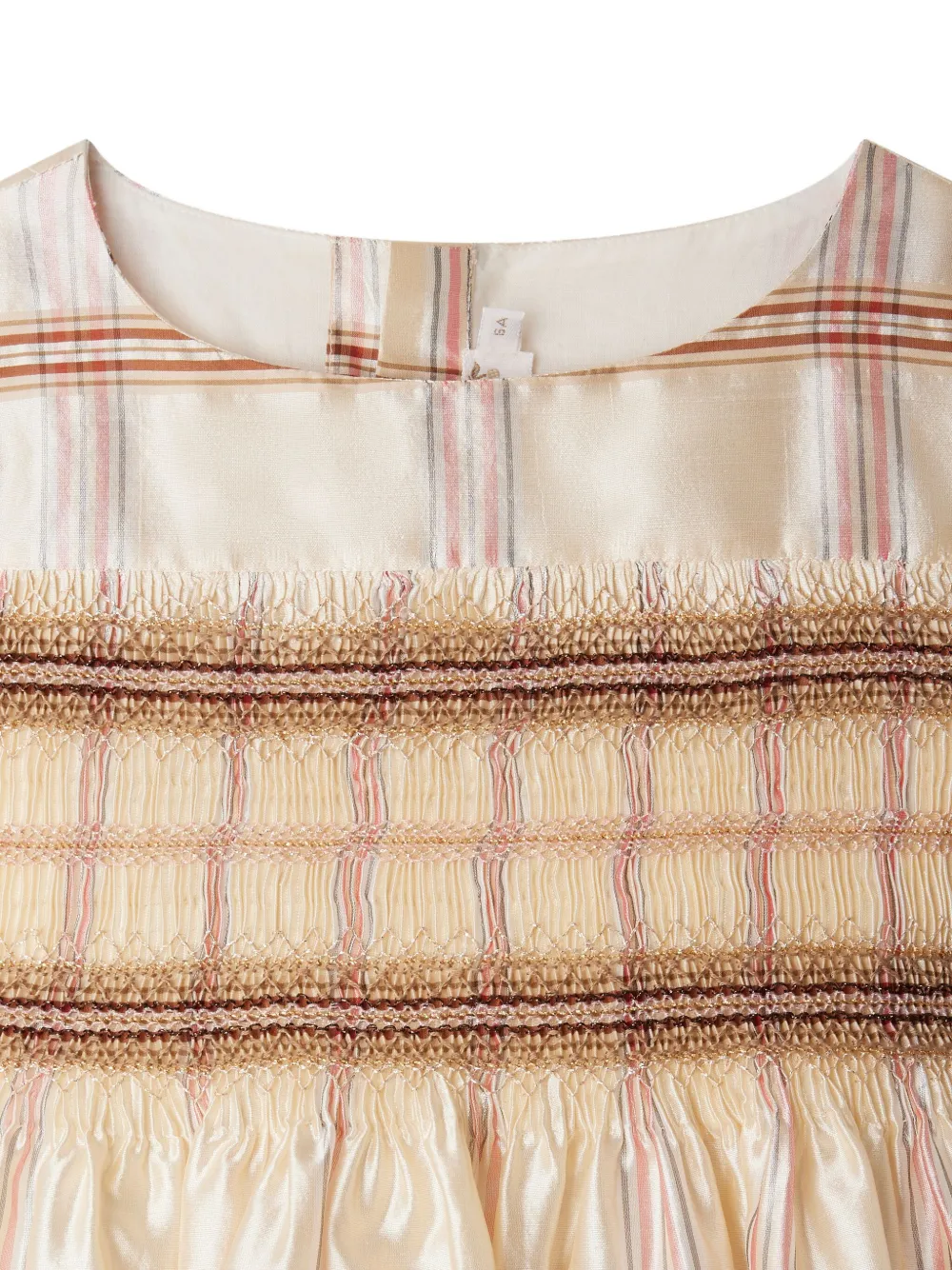 Клетчатое платье со сборками Bonpoint, нейтральный