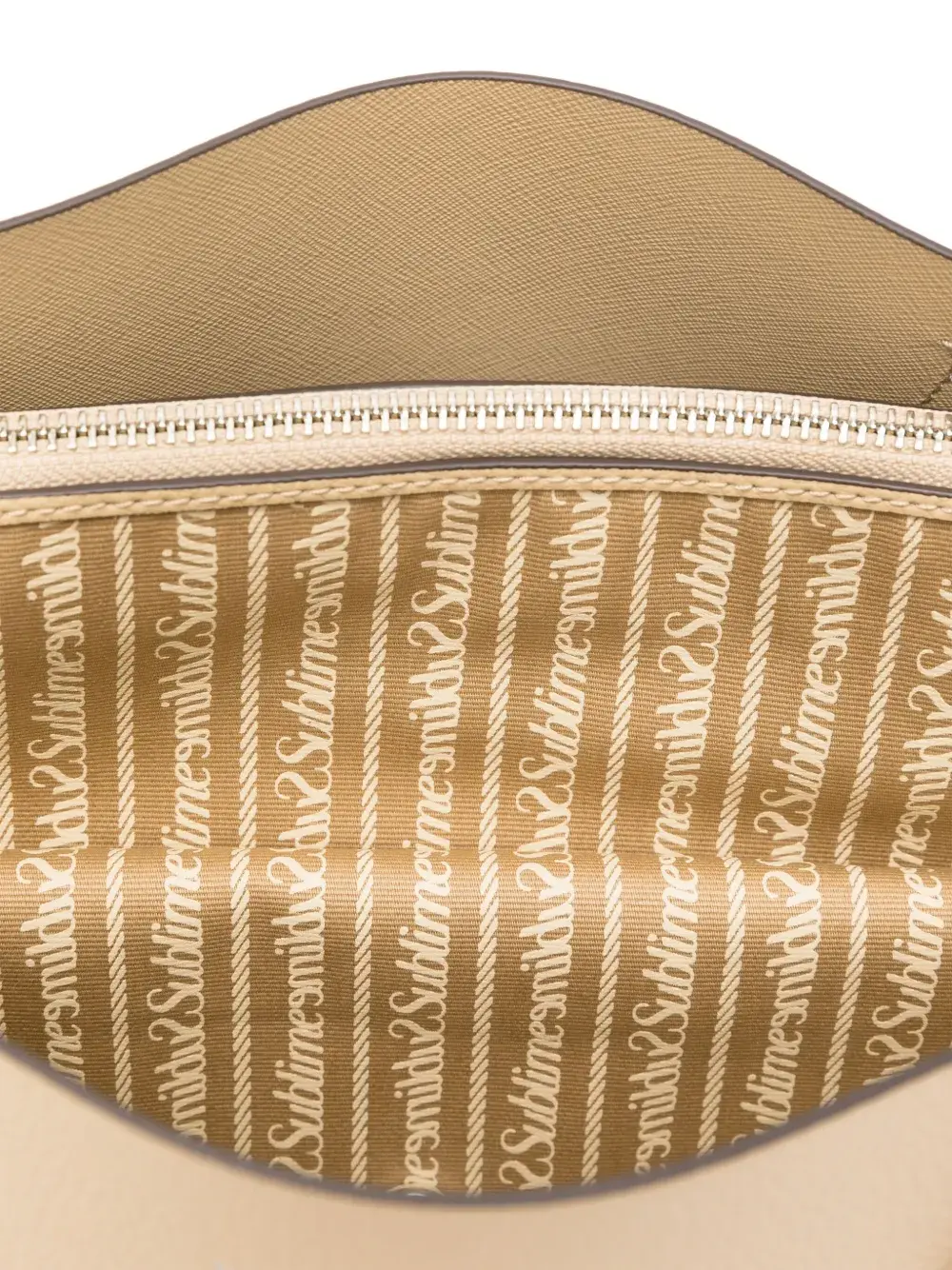 Светло-бежевый цвет, две верхние ручки, магнитная застежка, разделенное на отсеки отделение. В комплект входит защитный пылезащитный мешок.