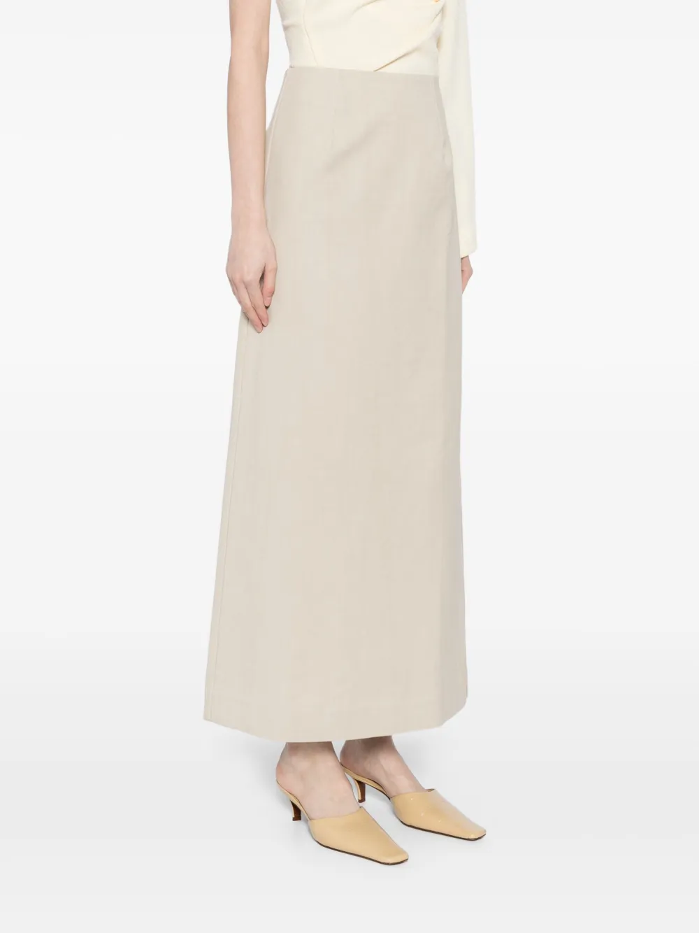 Бежевый, потайная застежка на крючок и молнию сзади, разрез сзади