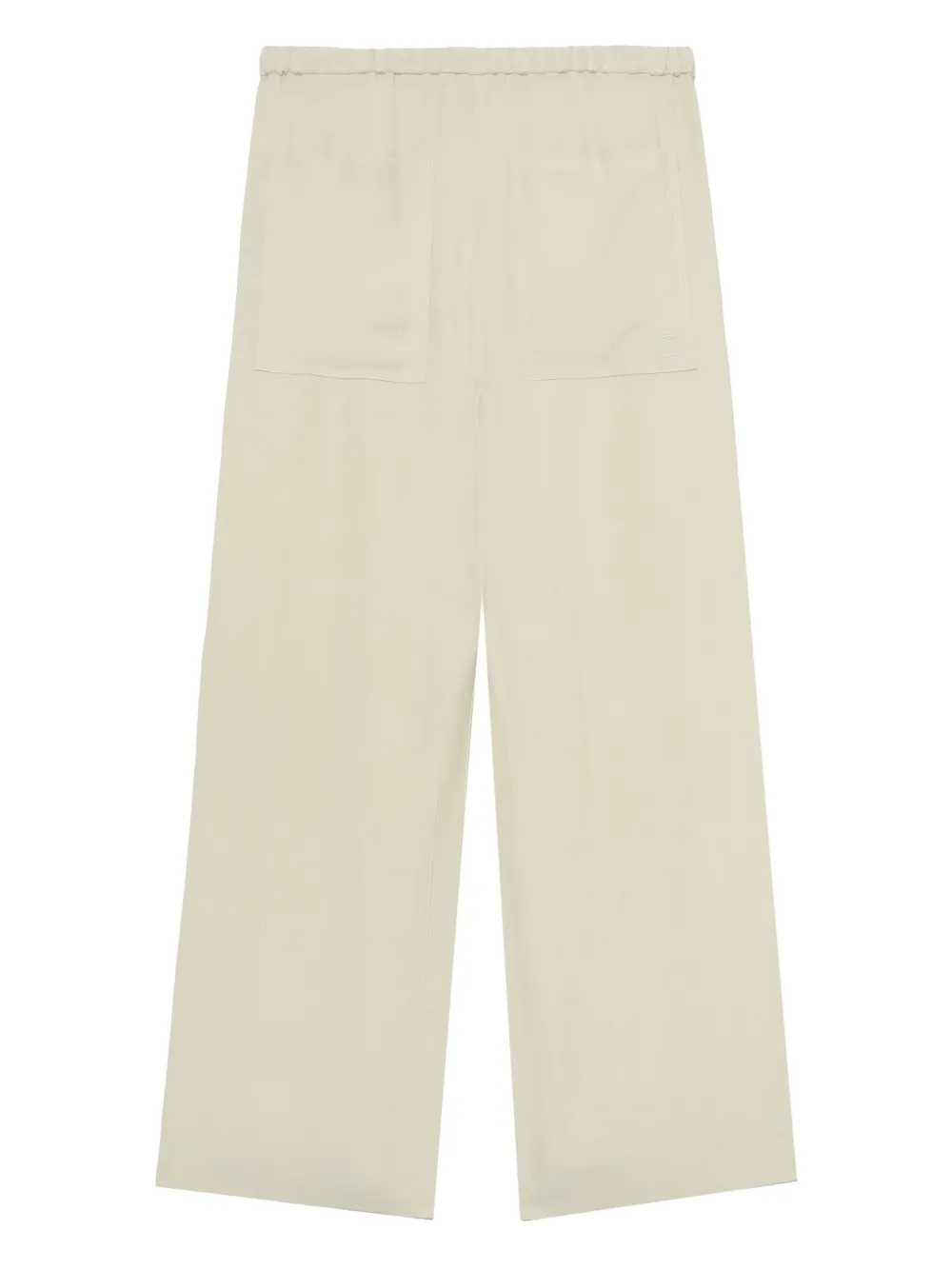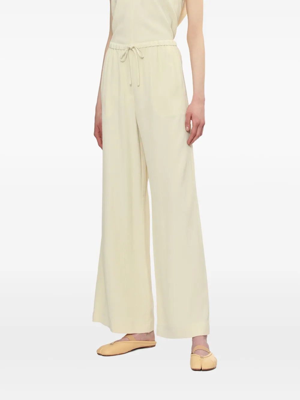 Бежевый эластичный пояс на шнурке, высокая талия, широкие штанины