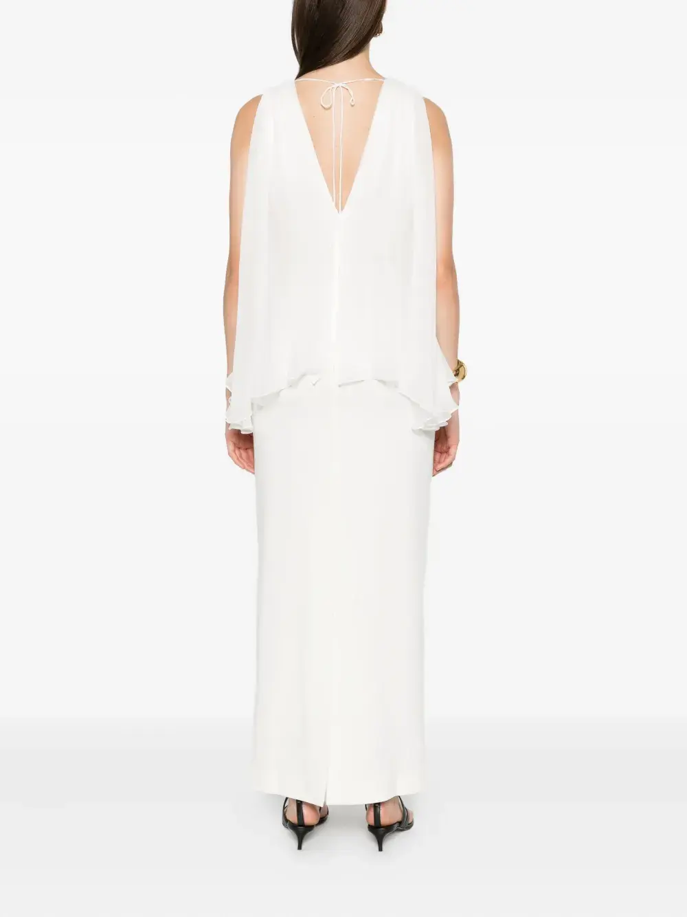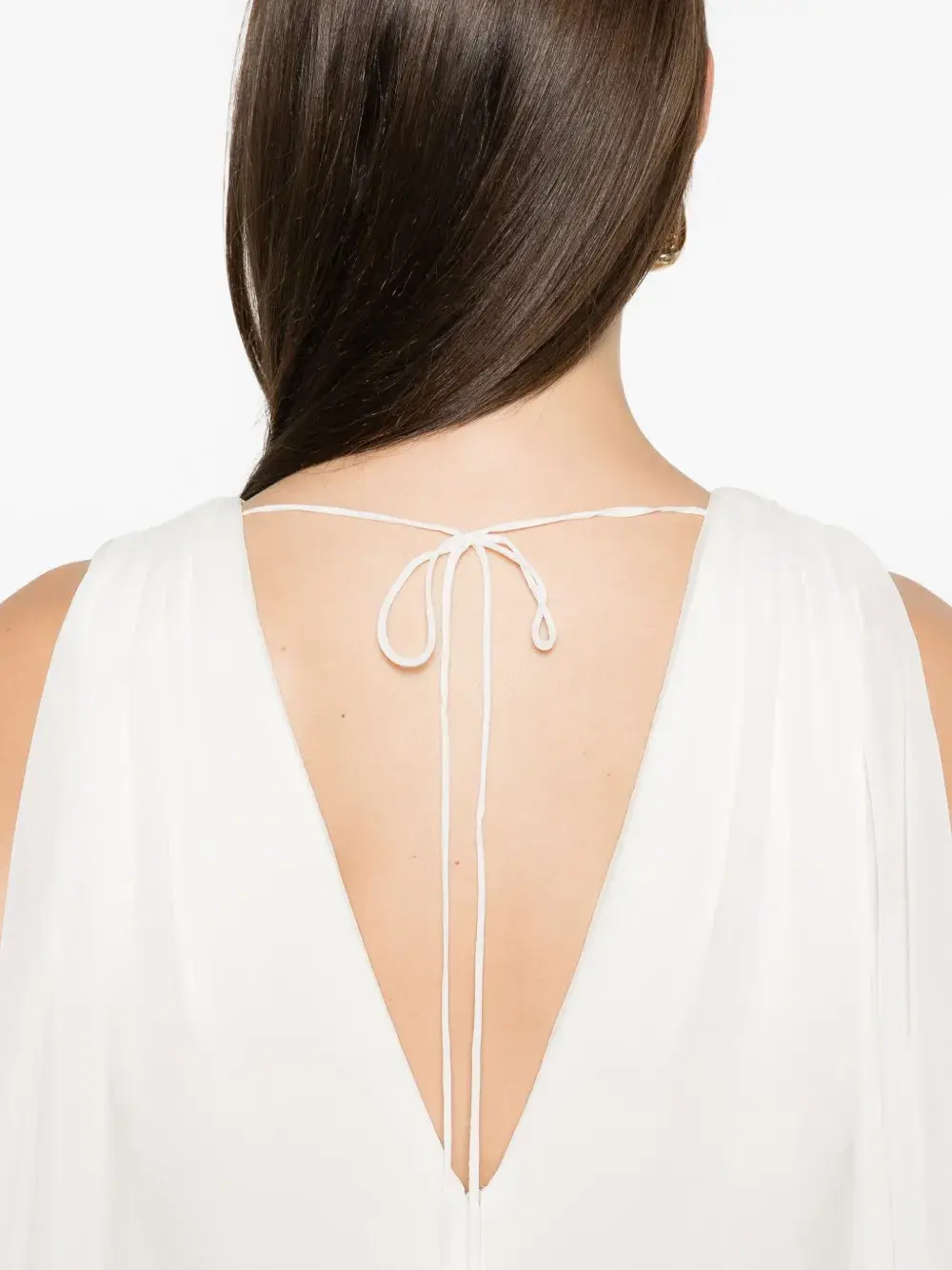 Белая завязка сзади, V-образный вырез, без рукавов, перекрывающая вставка