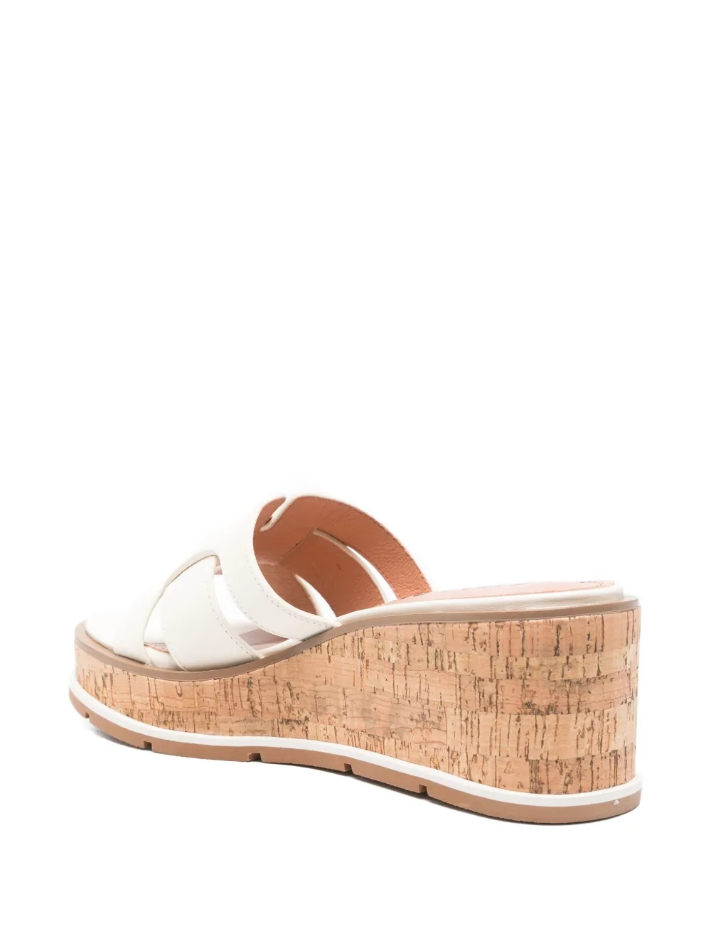 Туфли на танкетке из белой кожи с H-образным ремешком и открытым носком, без застежек