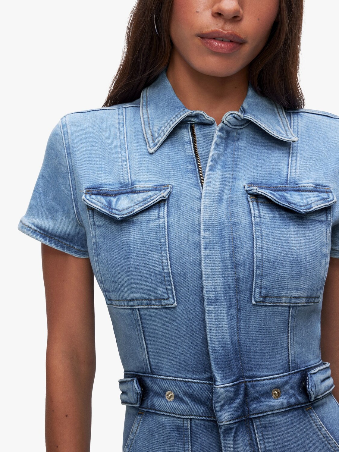 Джинсовый комбинезон Good American с короткими рукавами, синий