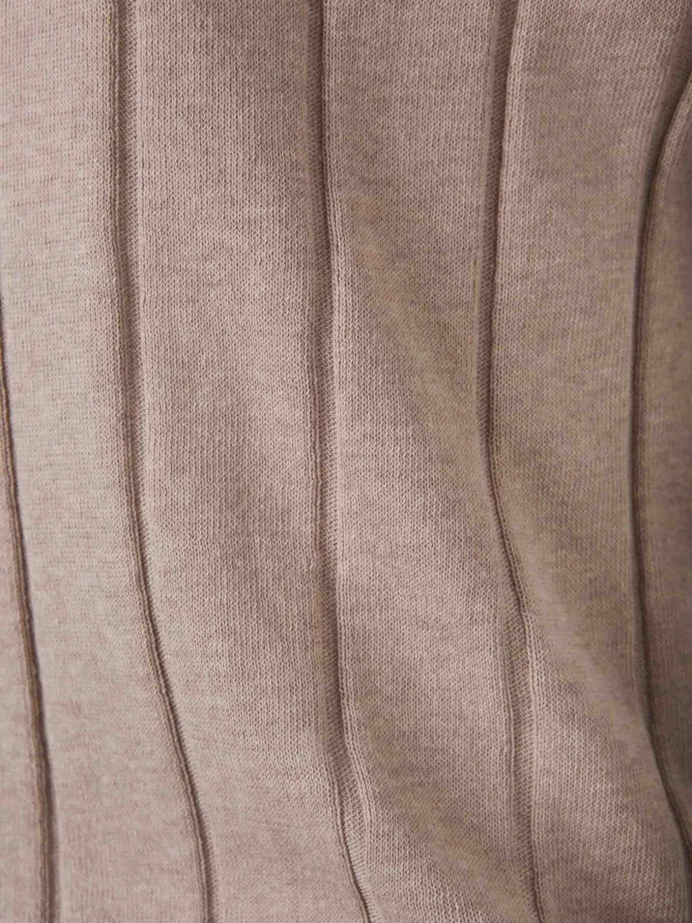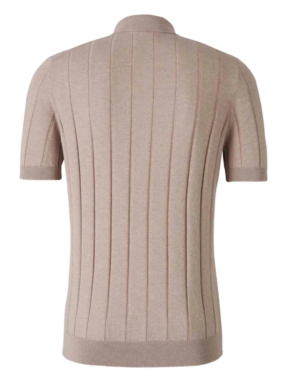Застежка на пуговицы песочно-бежевого цвета, короткие рукава, ребристый воротник, ребристый подол