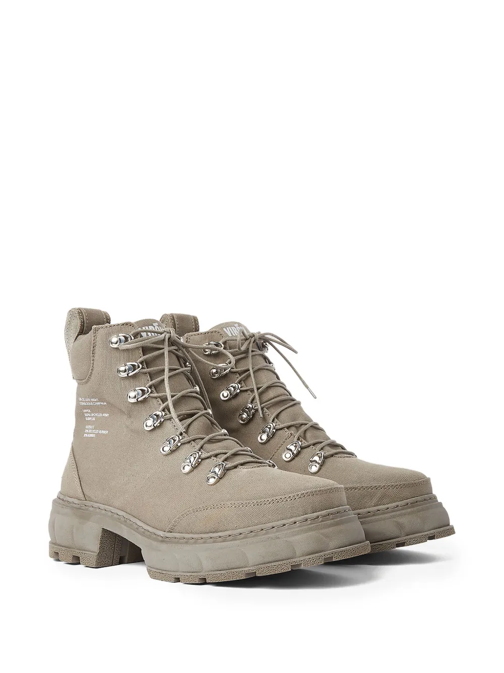 Бежевый переработанный холст, шнуровка, мягкий воротник, массивная рифленая подошва