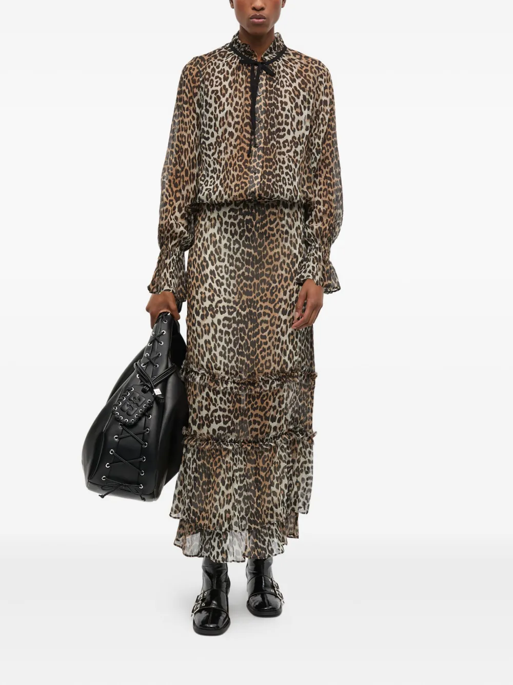 Блузка с леопардовым принтом GANNI, нейтральный