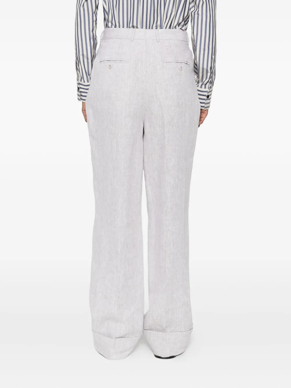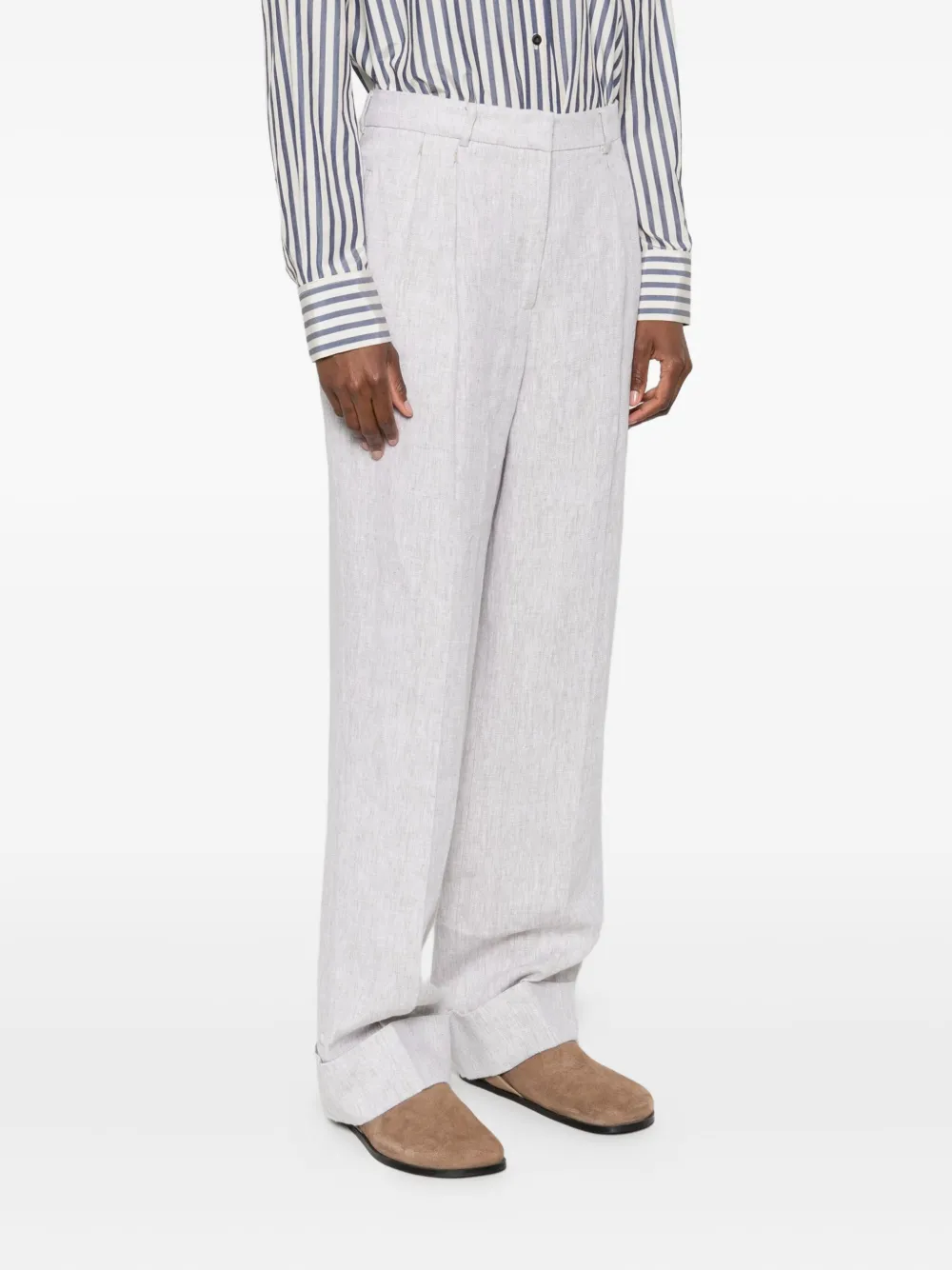 Светло-бежевые заутюженные складки, манжеты, высокая талия, гульфик на пуговицах