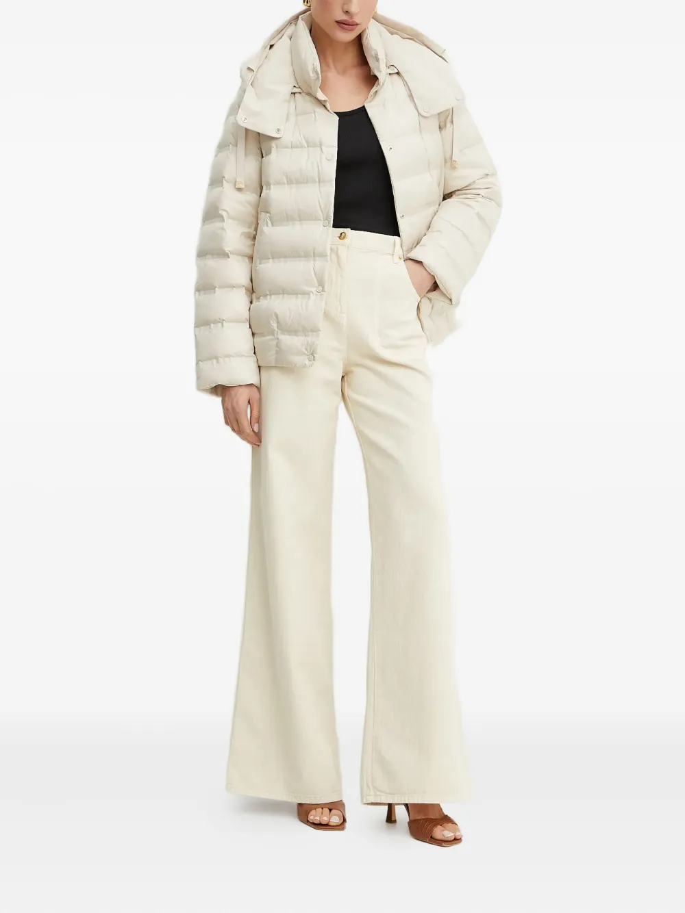 Не совсем белый, узор «елочка», высокая талия, боковые карманы, прорезные карманы, прямой подол