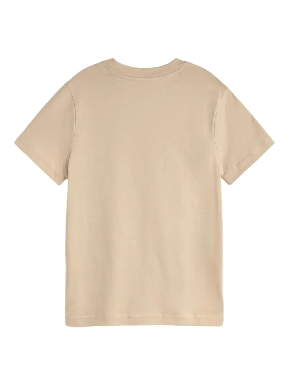 Бежевый, короткие рукава, круглый вырез, вышитый логотип, прямой подол, хлопок