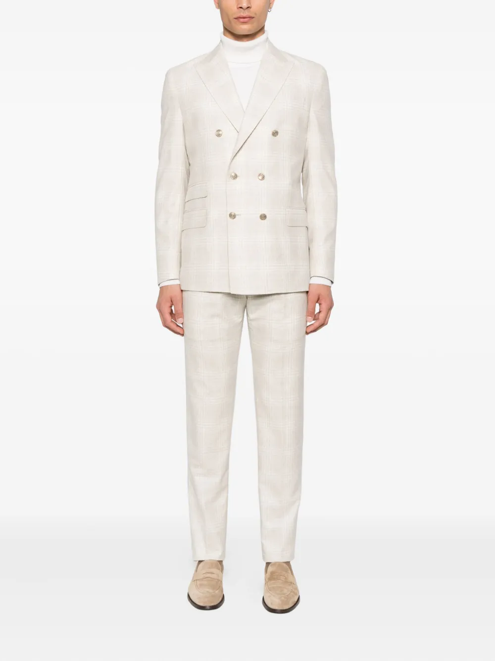 Клетчатый двубортный костюм Eleventy, нейтральный