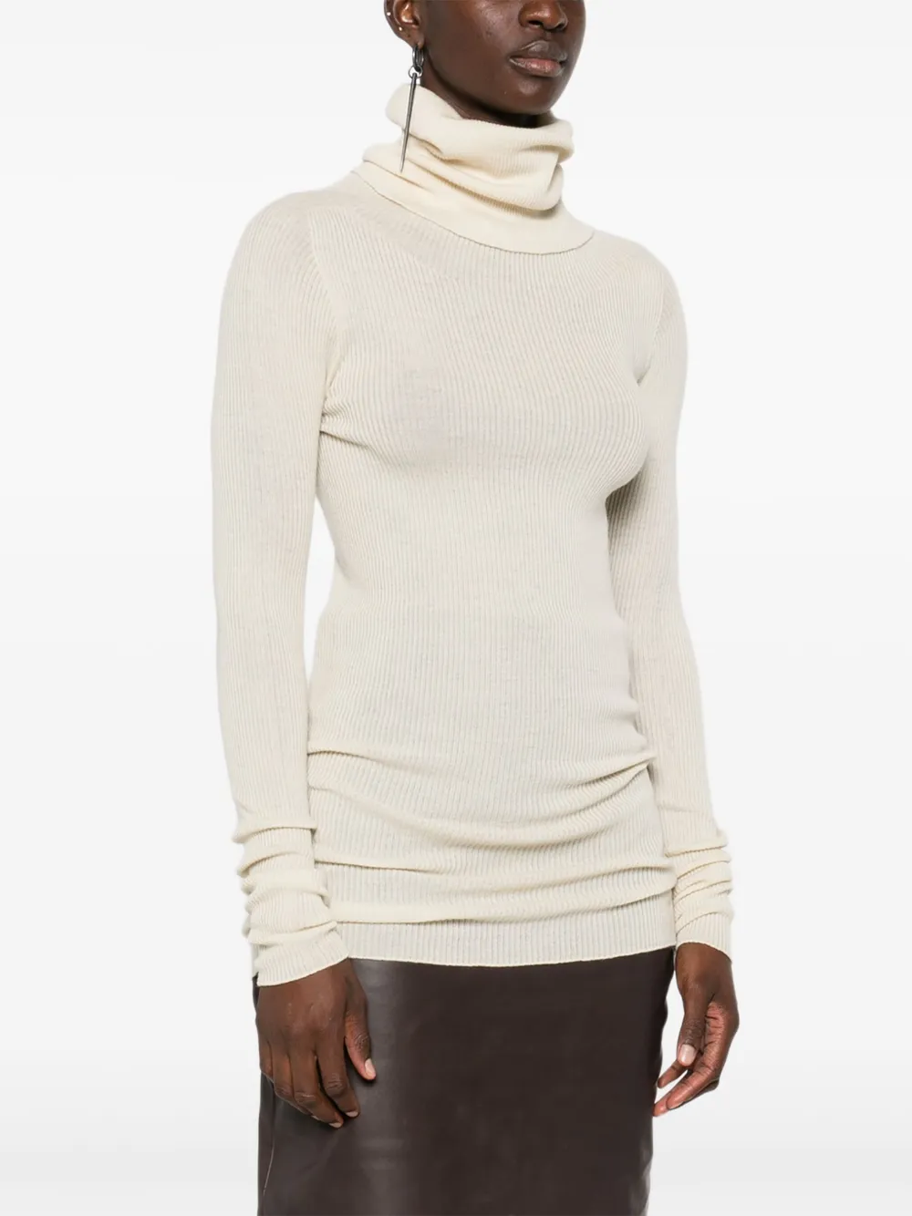Свитер в рубчик с высоким воротником Rick Owens, нейтральный