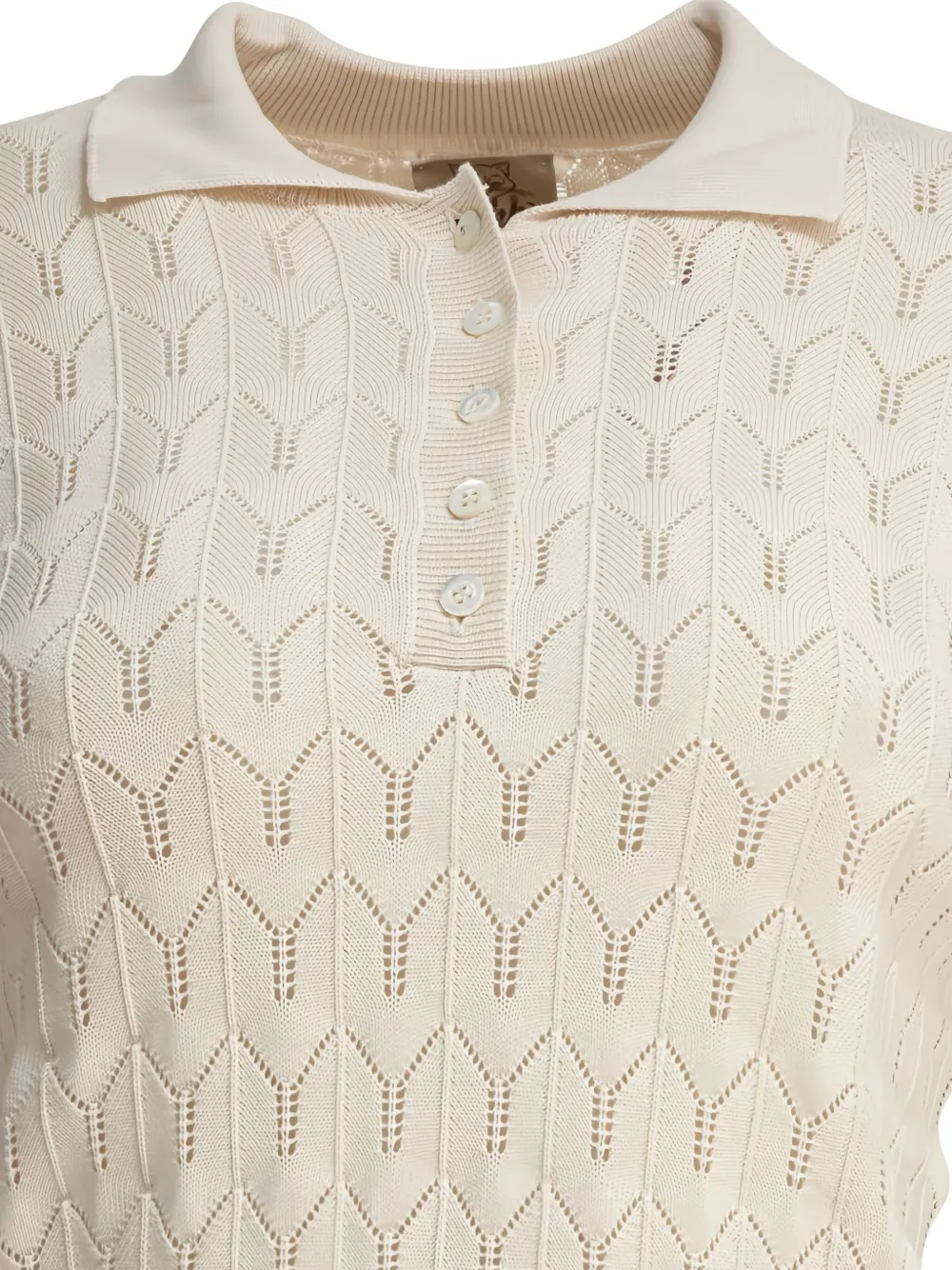 Бежевый хлопковый шевронный узор, короткие рукава, воротник-поло, планка с пуговицами