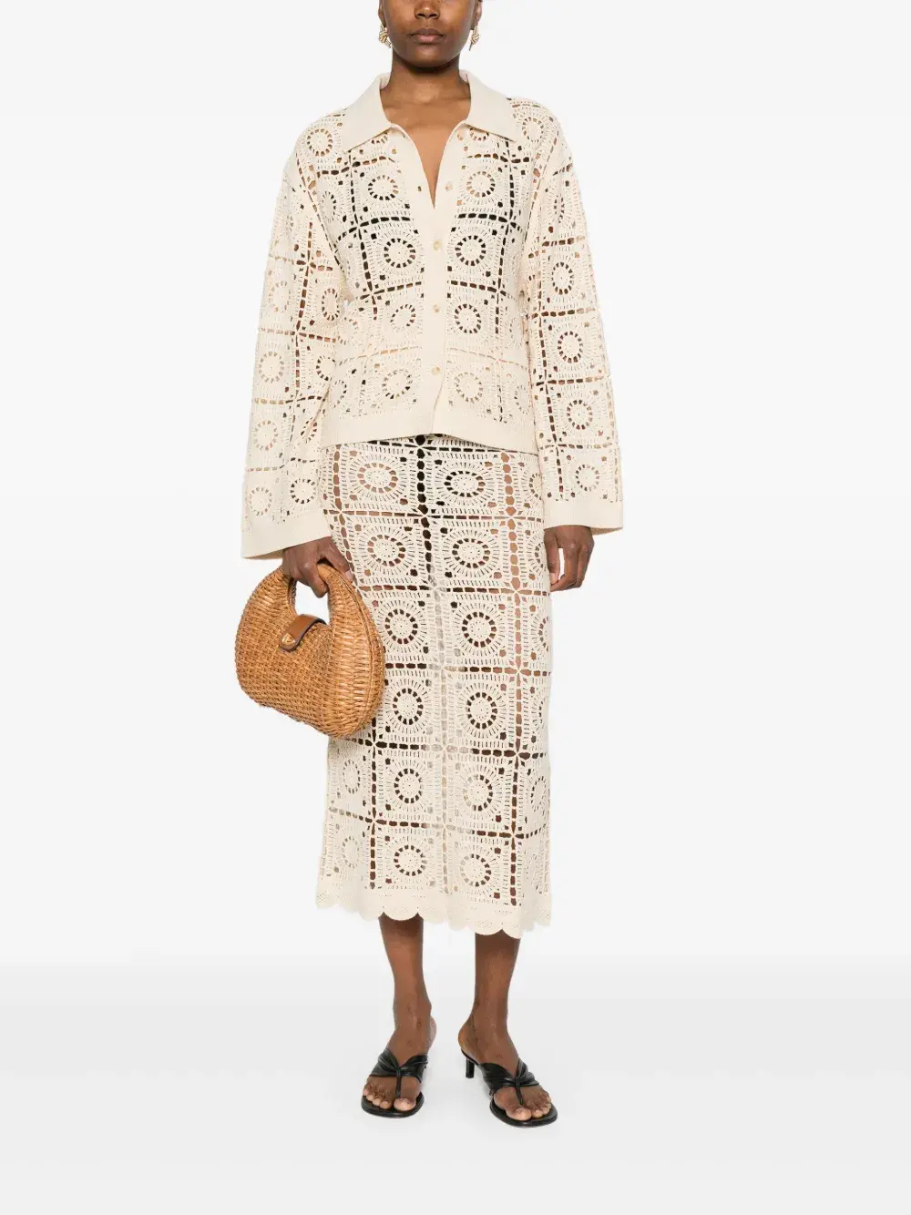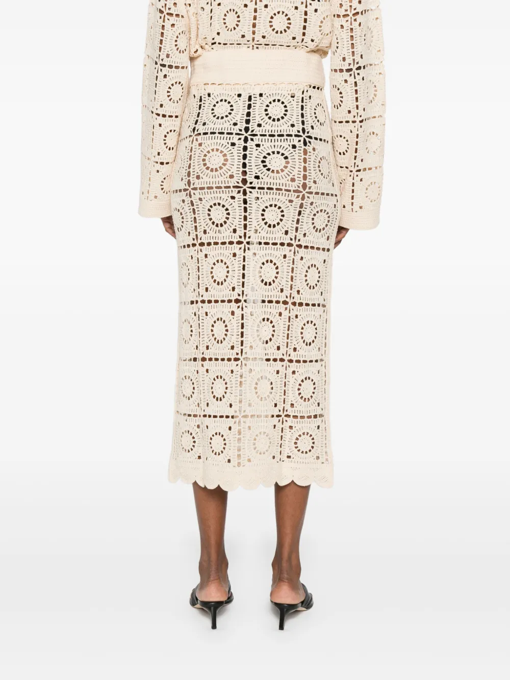 Бежевый эластичный пояс, фестончатый подол, средняя длина