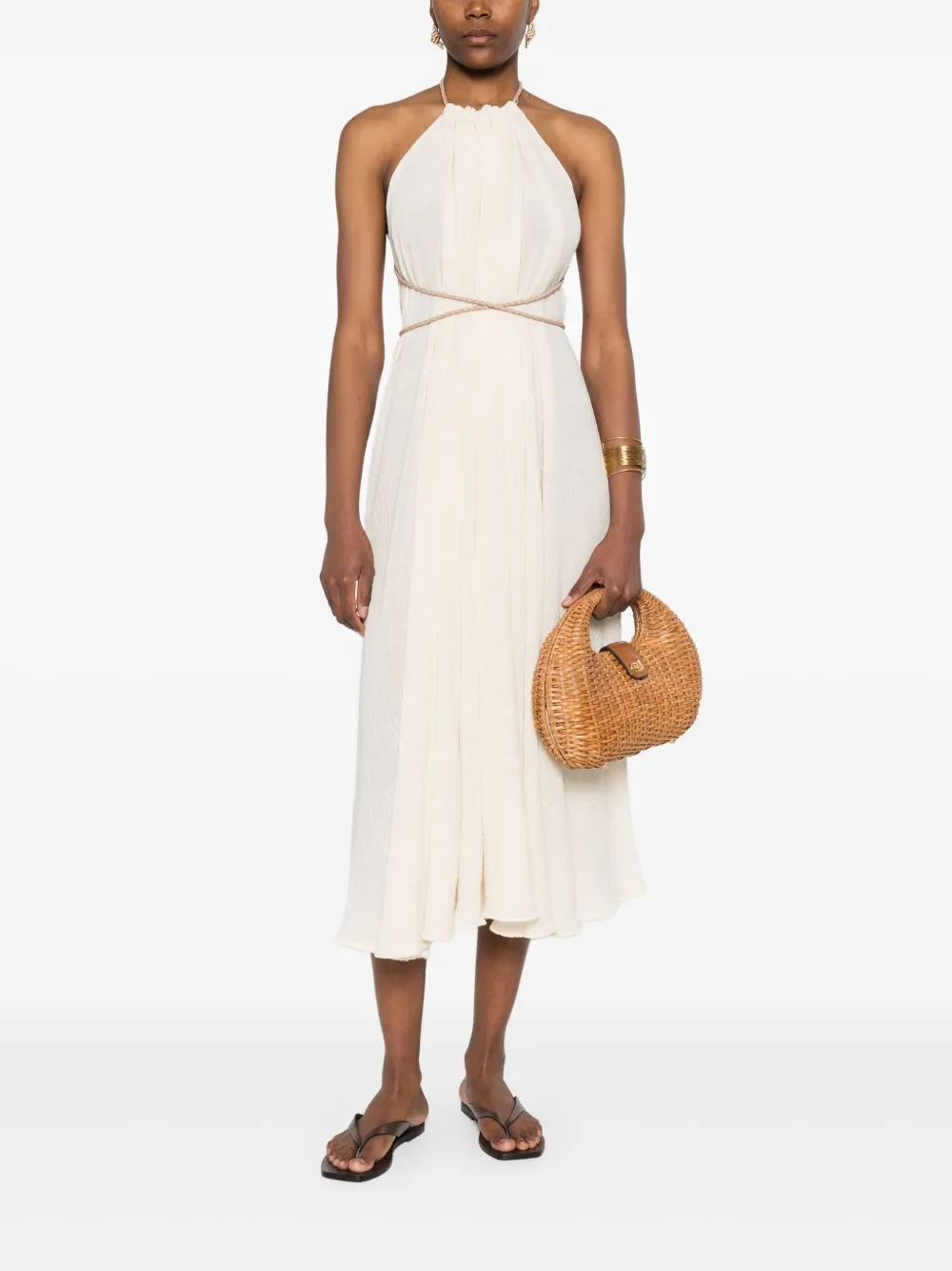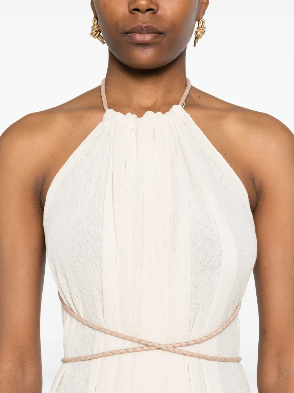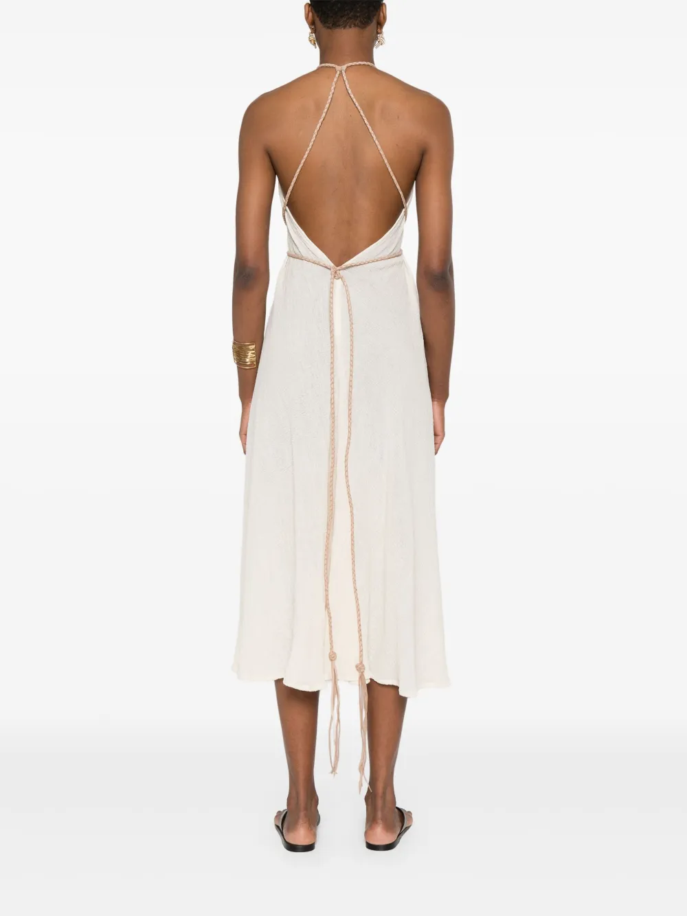 Белое платье с завязкой сзади, открытой спиной, без рукавов, расклешенным подолом