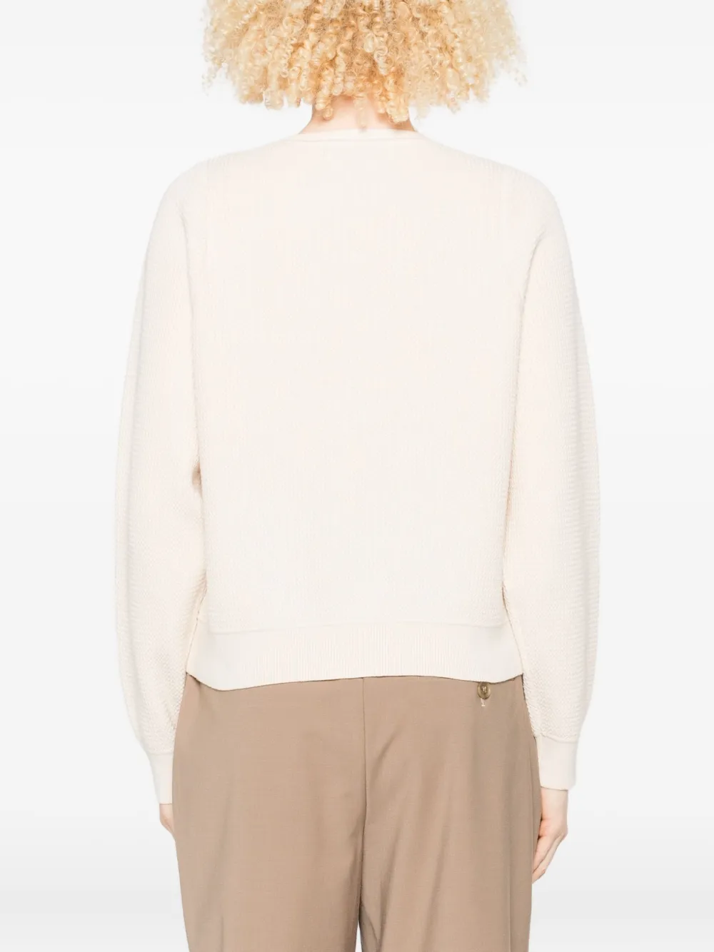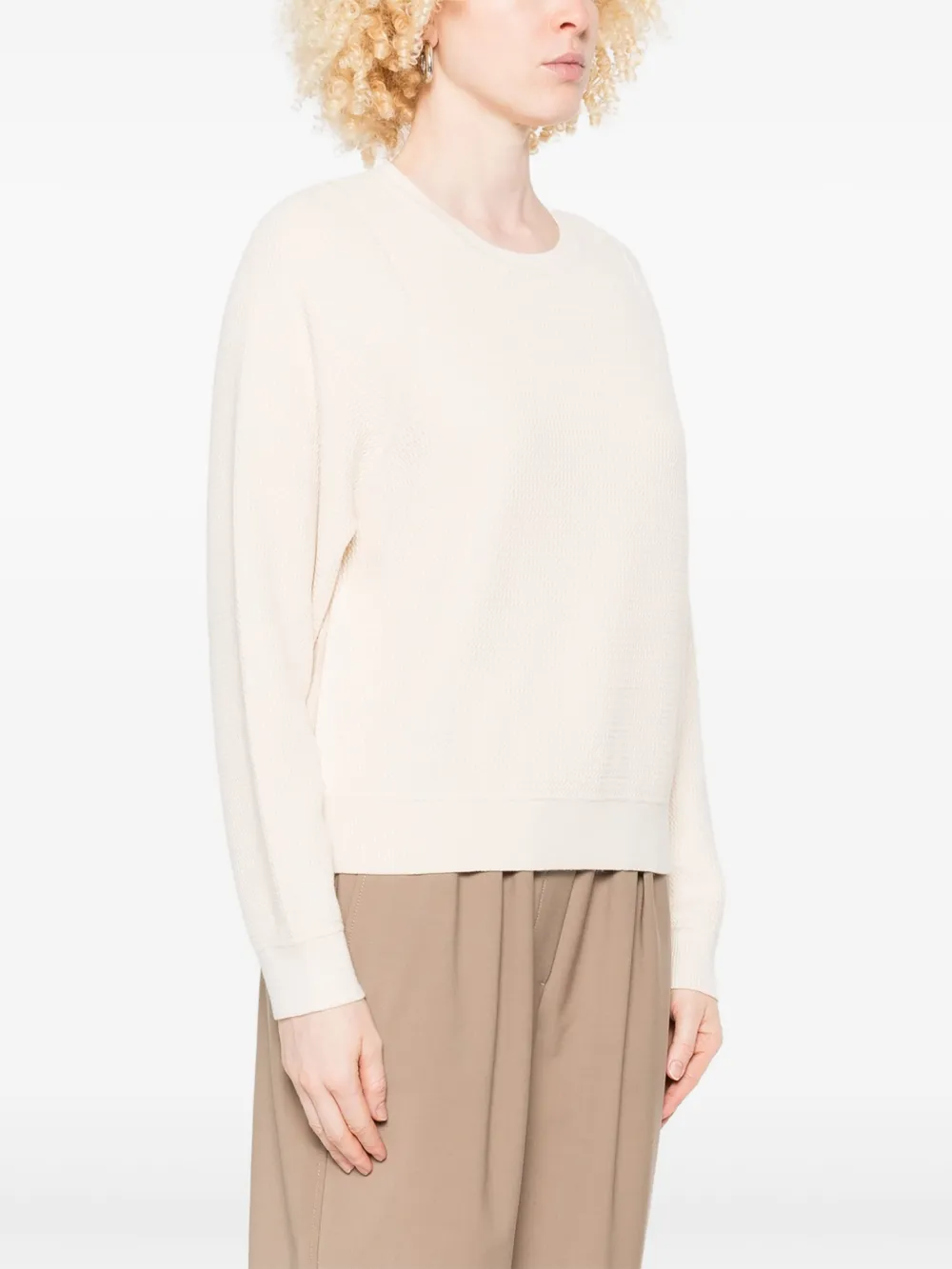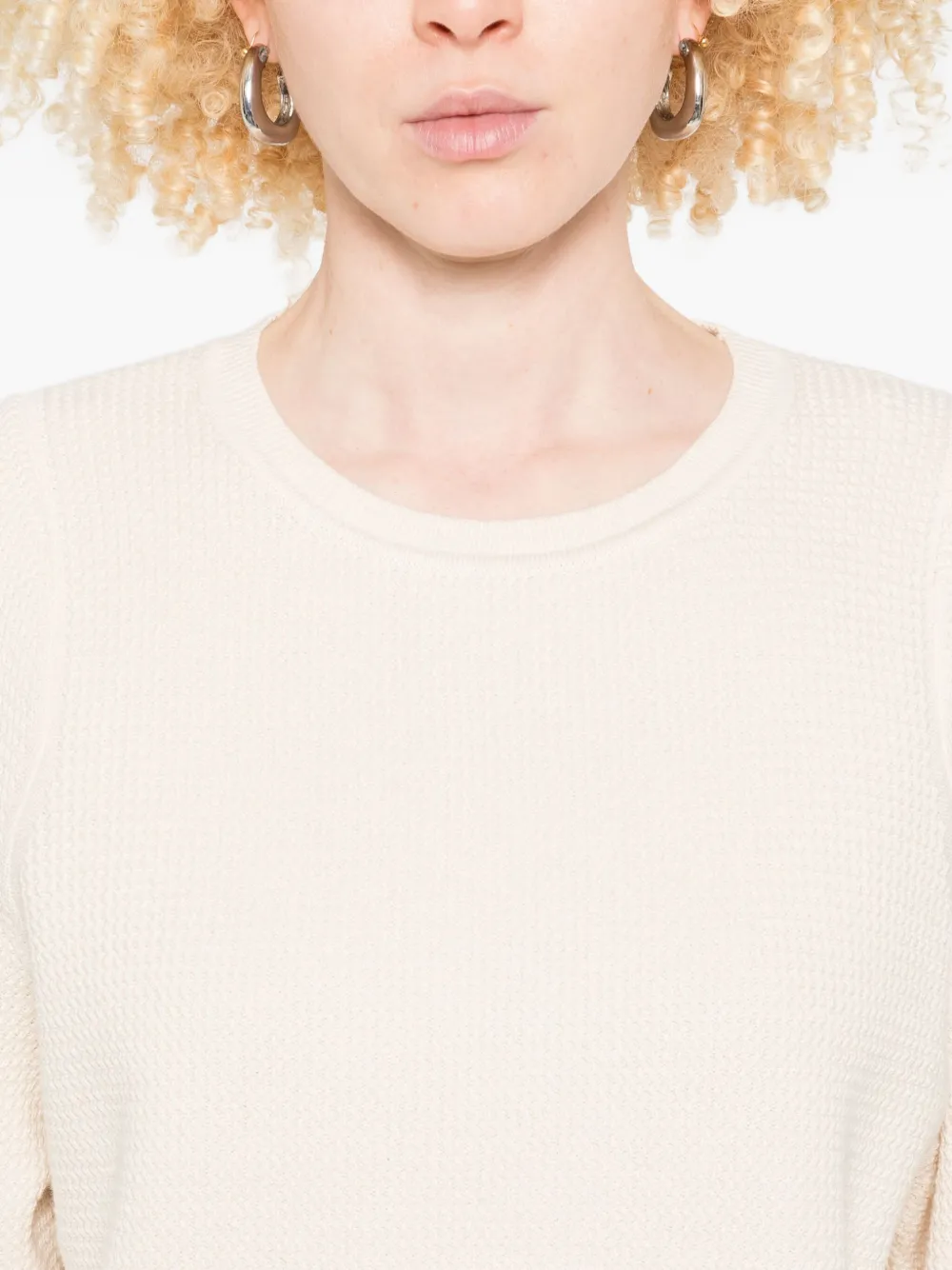 Кремовая ребристая текстура, длинные рукава, круглый вырез, спущенное плечо
