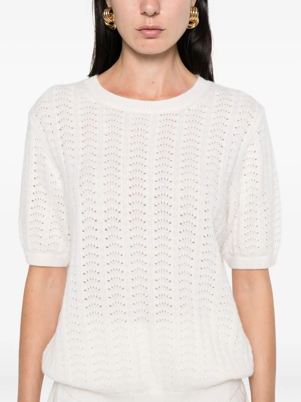 Ажурный топ с короткими рукавами Lisa Yang, нейтральный