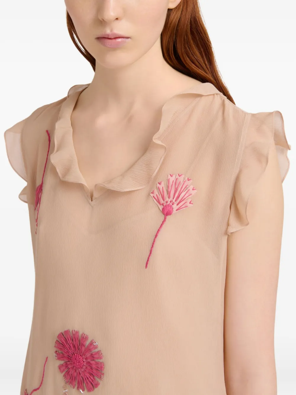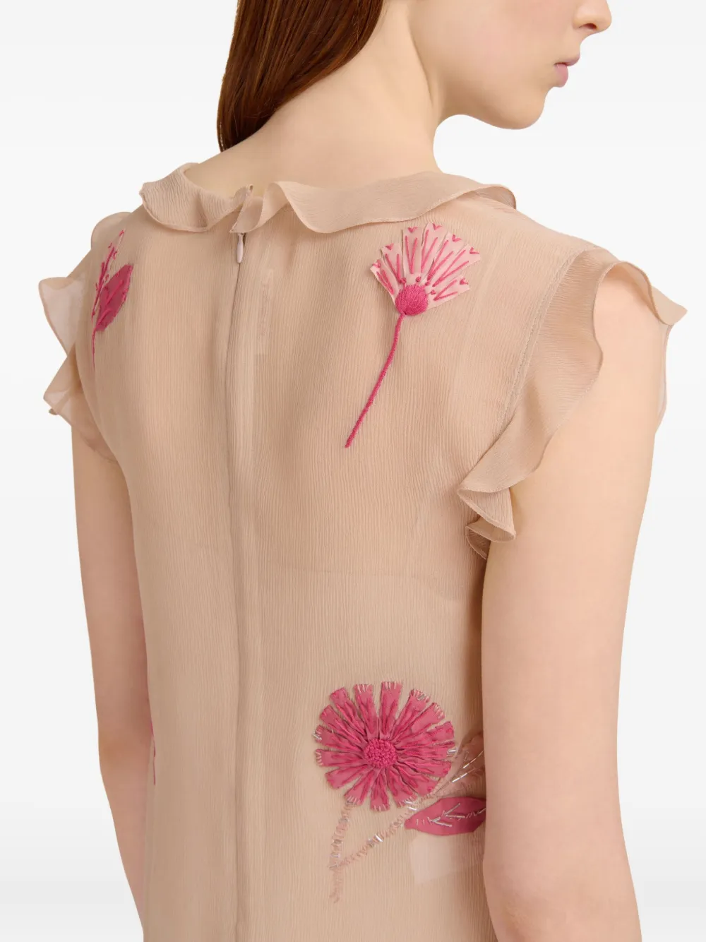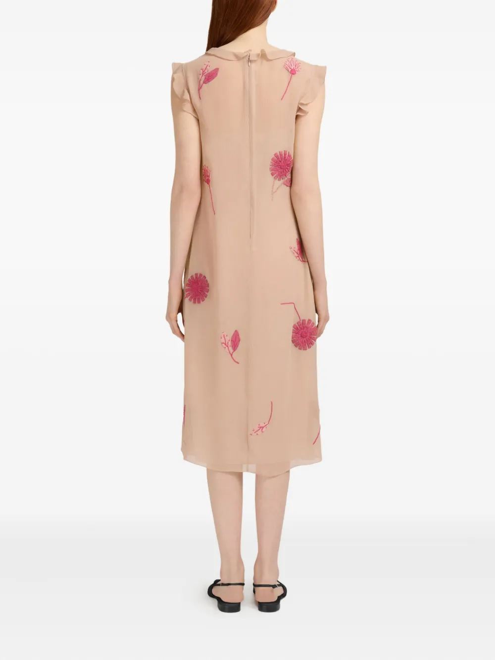 Платье с оборками и цветочной вышивкой Marni, нейтральный
