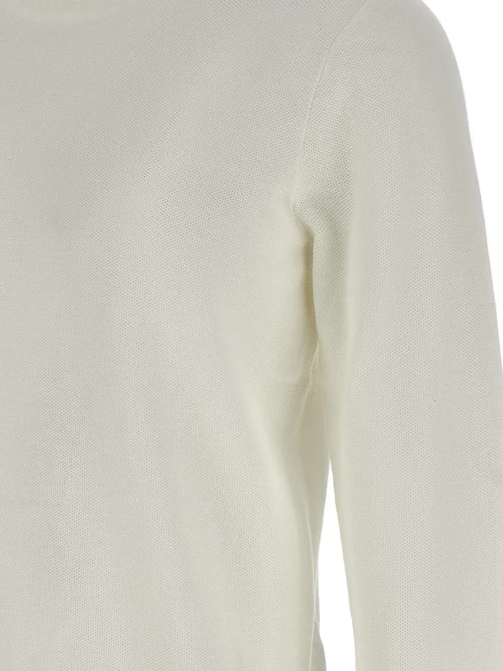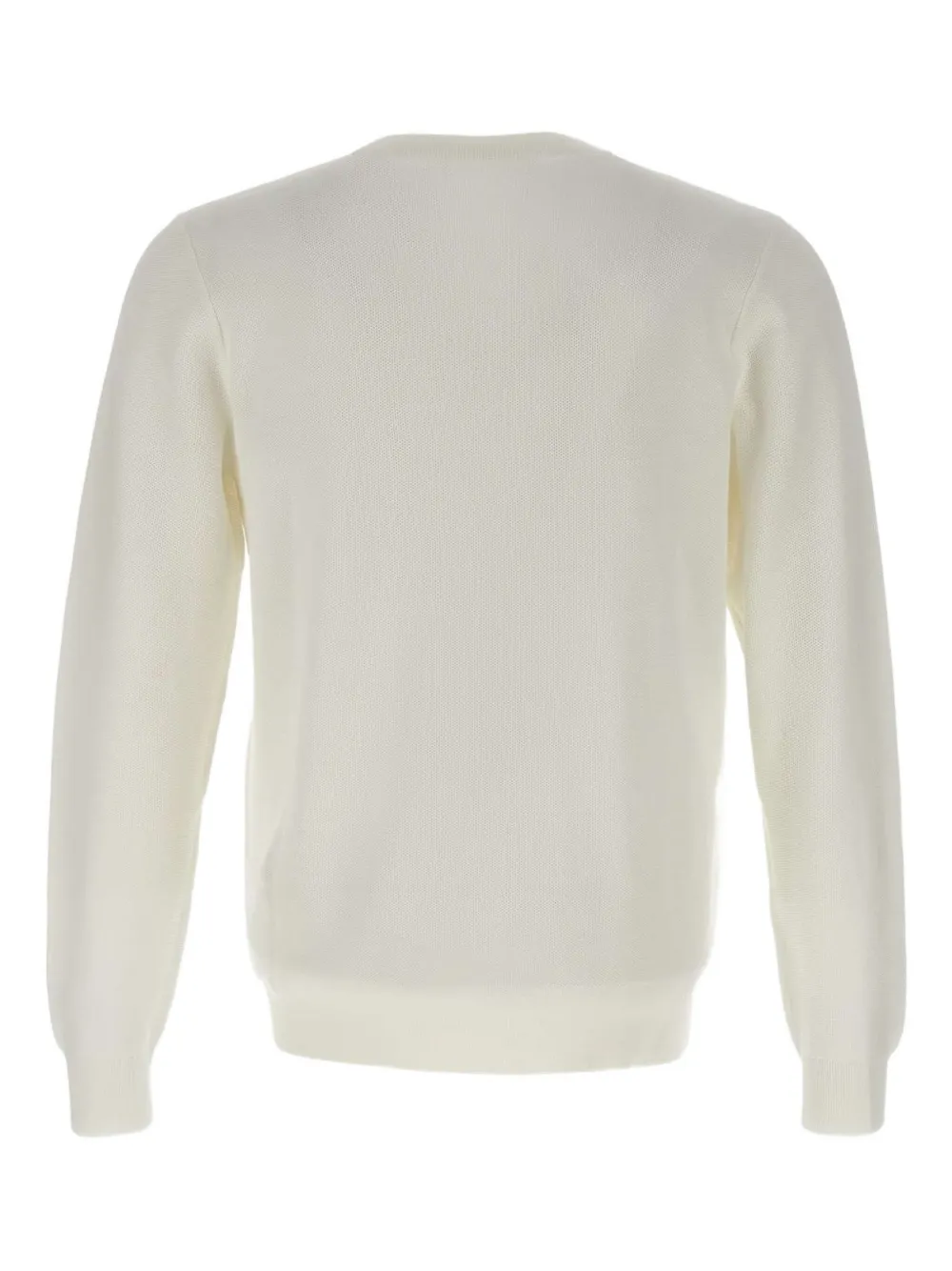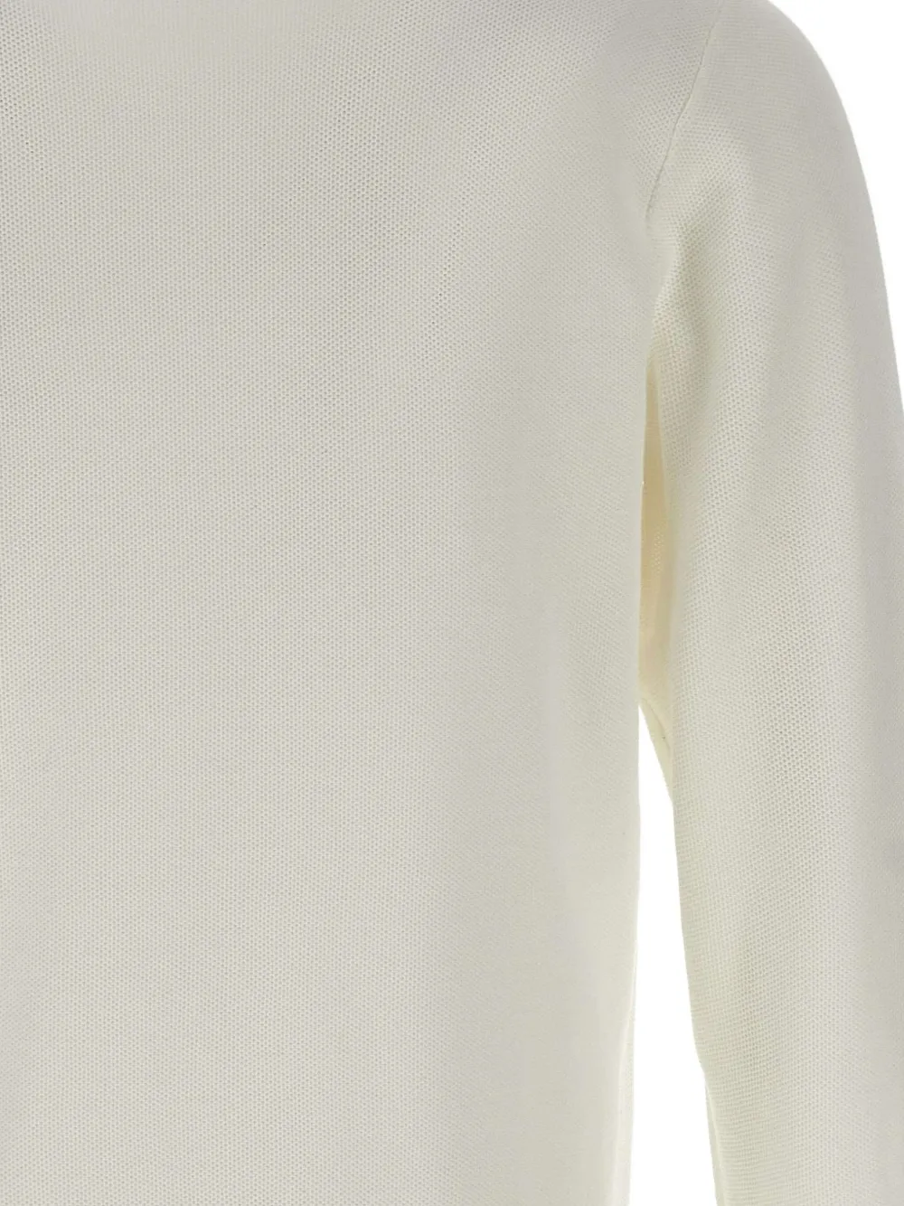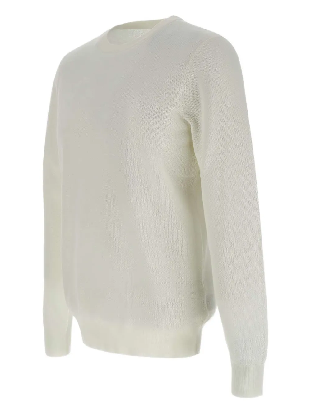 Белый, круглый вырез горловины, длинные рукава, ребристые манжеты, ребристый подол