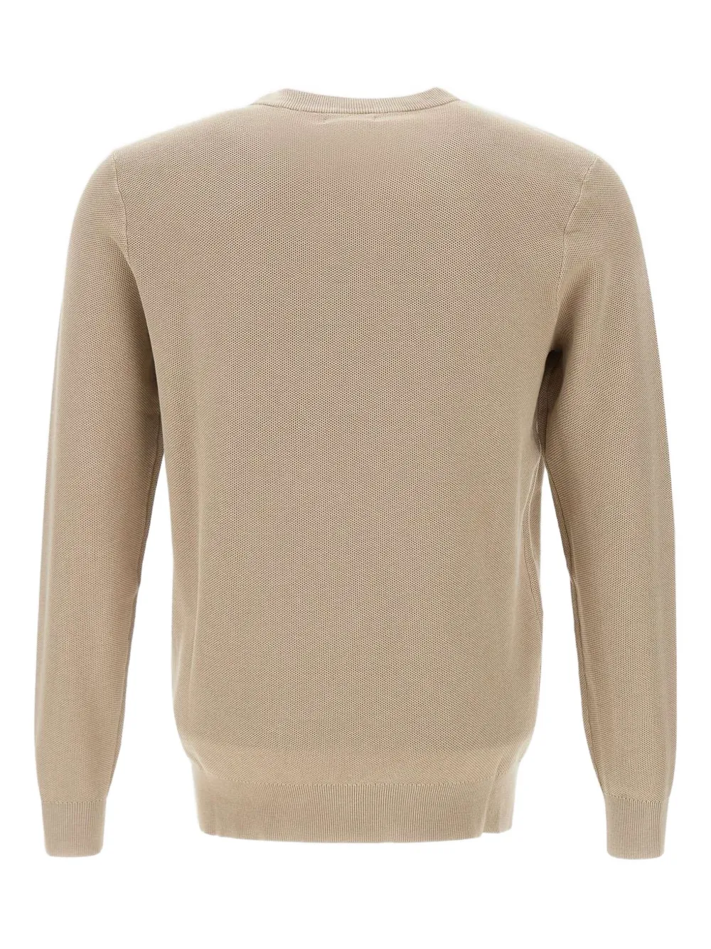 Бежевый ребристая фактура, круглый вырез, длинные рукава, вышитый логотип
