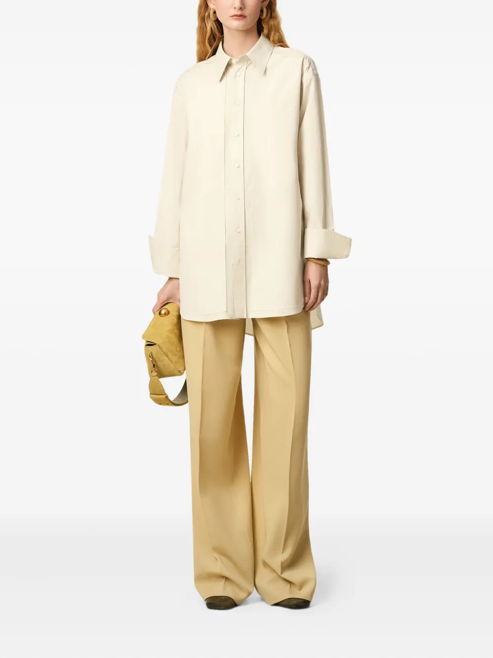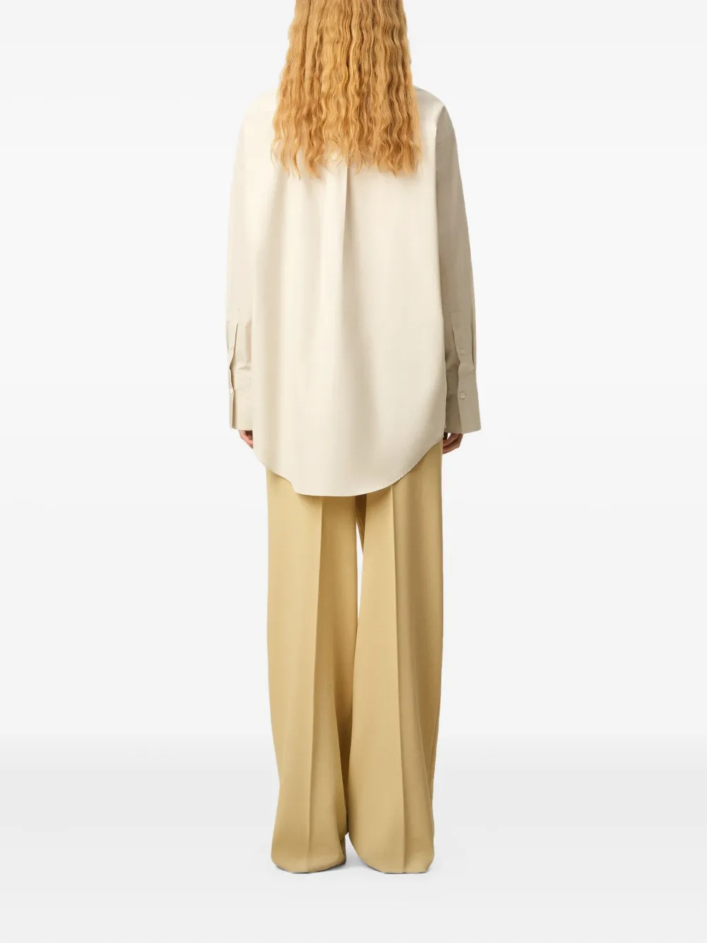Бежевый воротник-поло, длинные рукава, застежка на пуговицы, манжеты, логотип, украшение