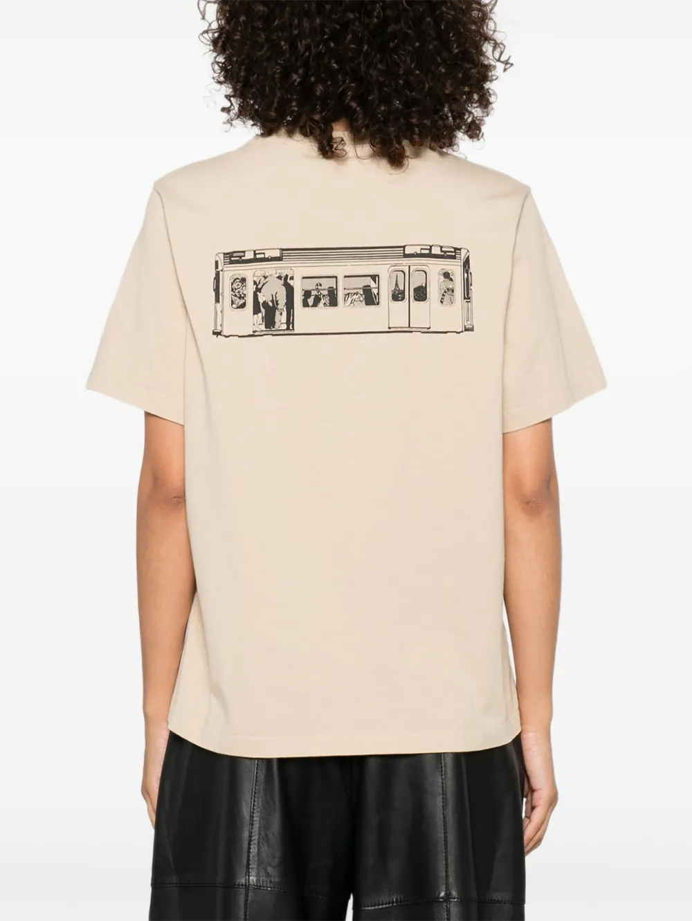 Бежевый с короткими рукавами, круглым вырезом, хлопчатобумажным материалом, логотипом