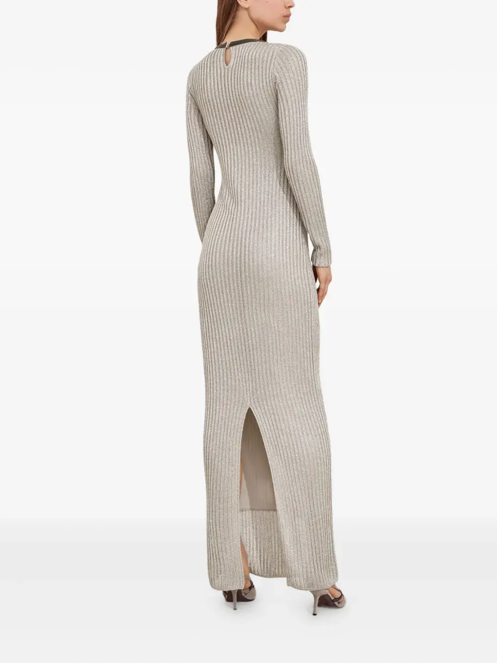 Платье макси в рубчик Brunello Cucinelli, нейтральный