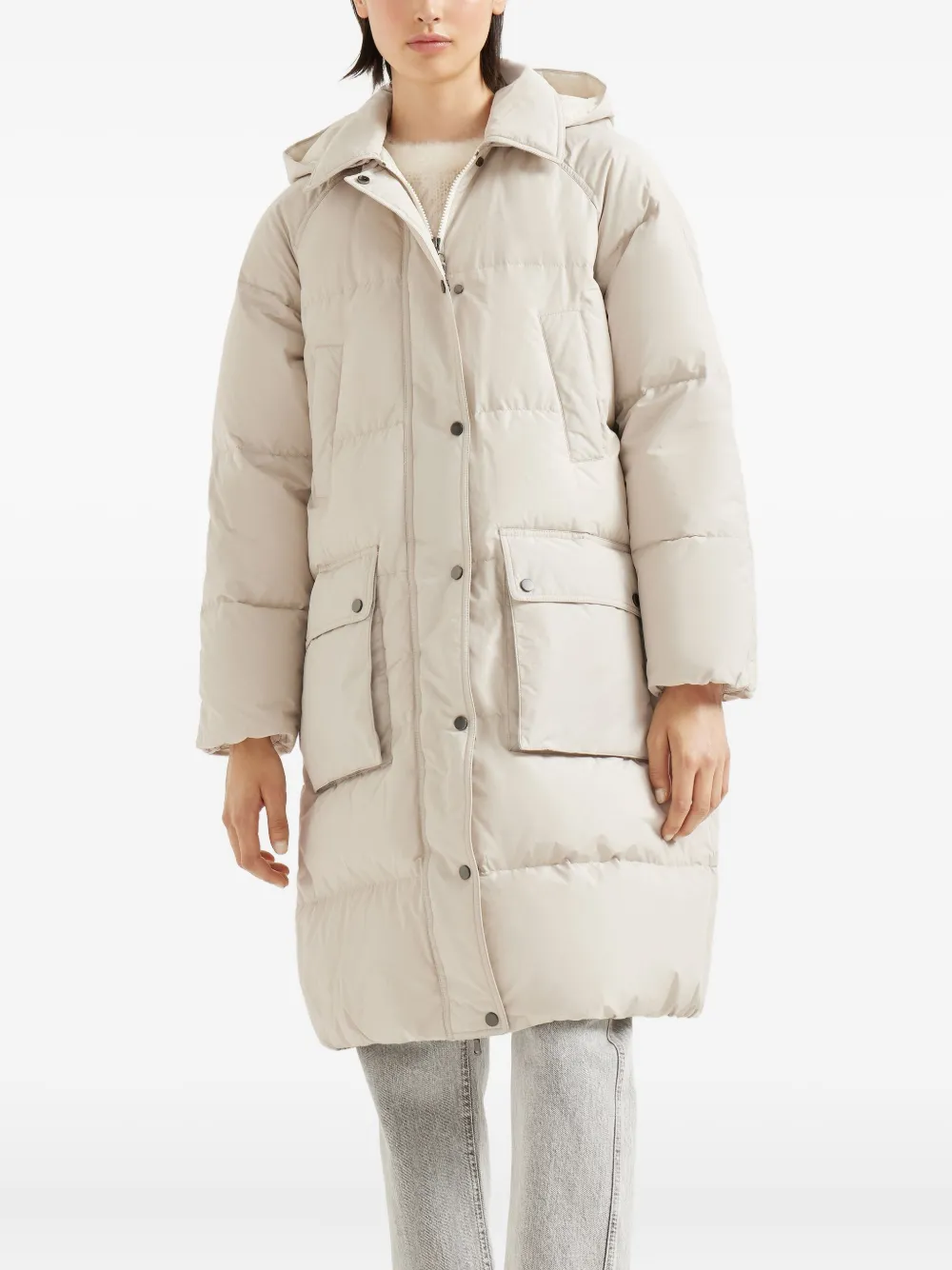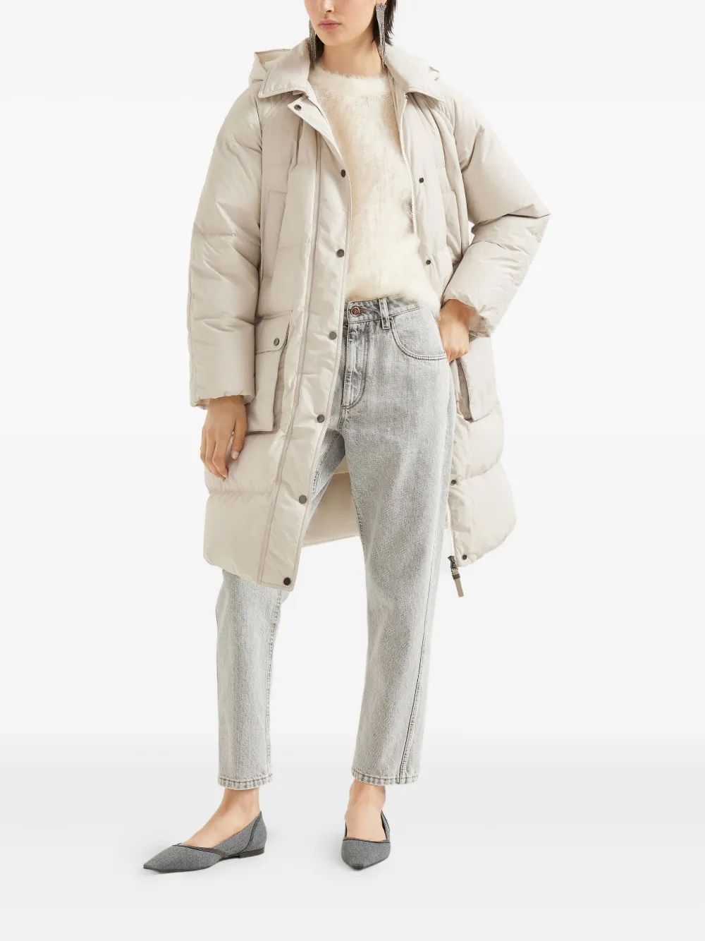 Стеганое пальто с капюшоном Brunello Cucinelli, нейтральный