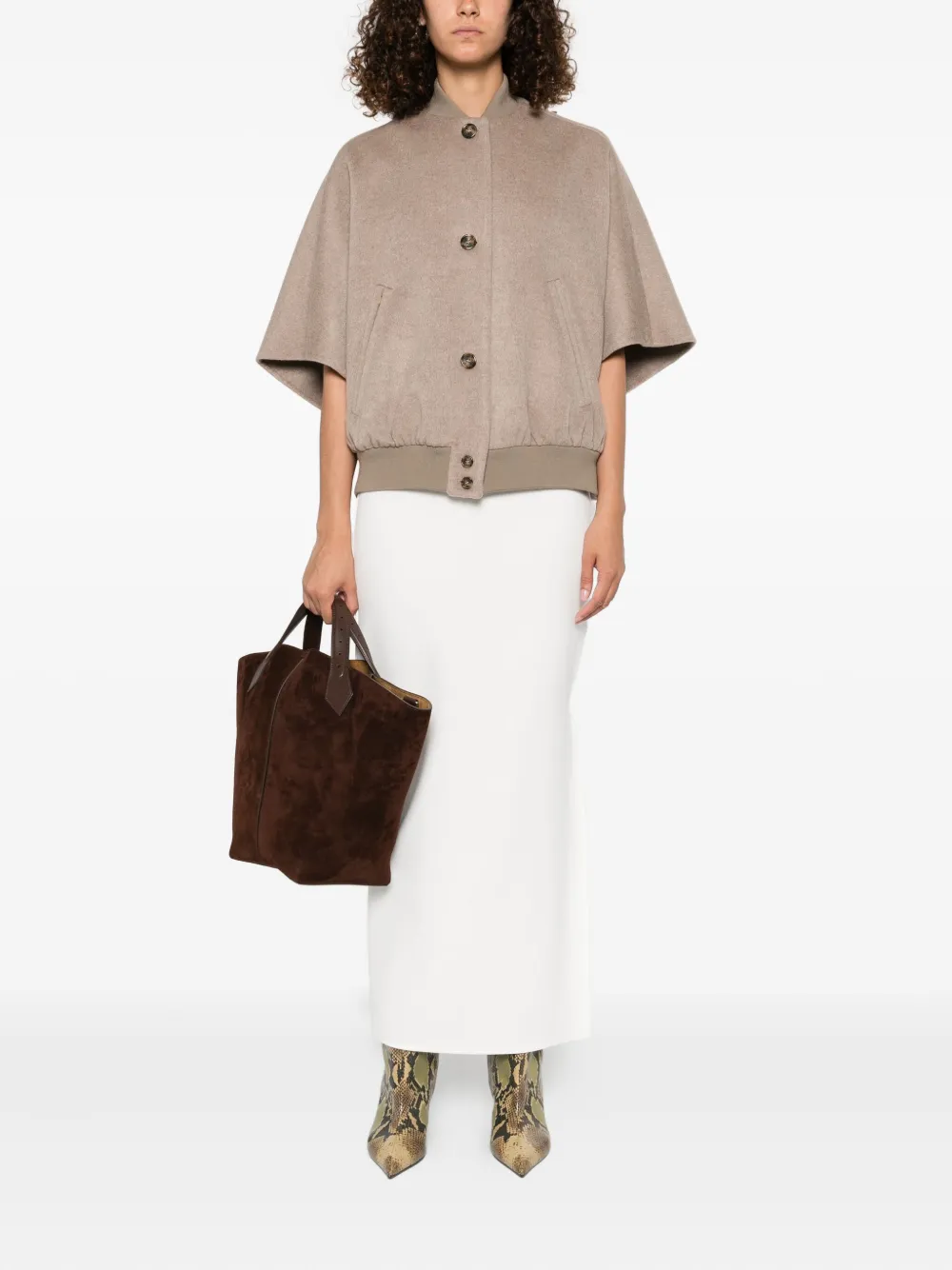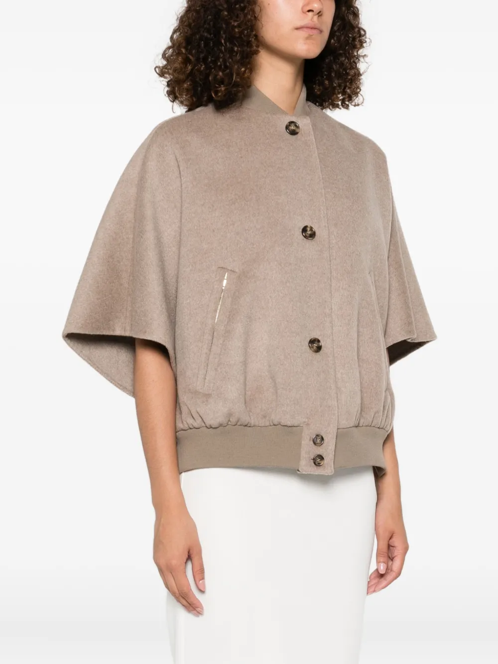 Шерстяное пальто с кейпом MAX MARA, нейтральный