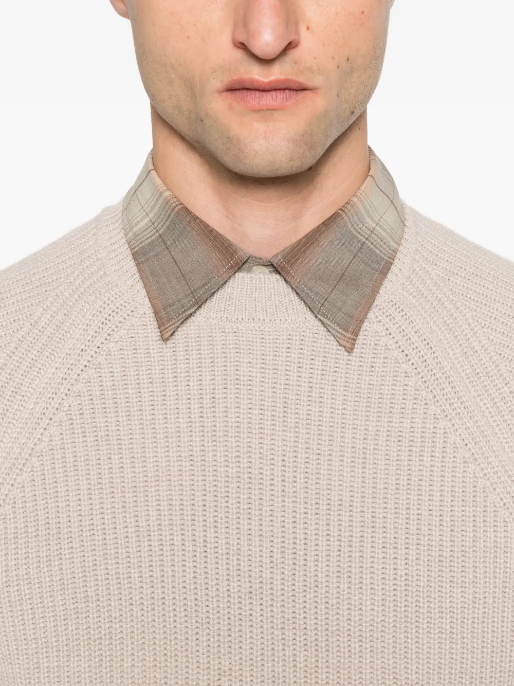 Бежевый реглан, рукава, ребристая вязка, круглый вырез горловины, длинные рукава, кашемир