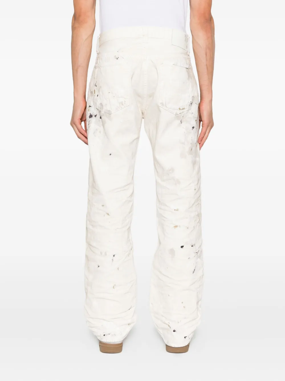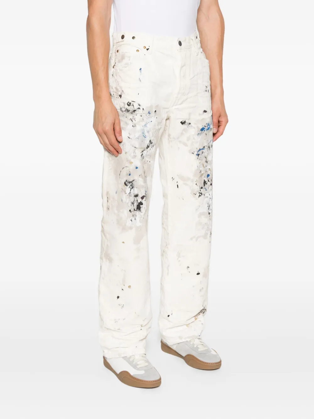 Белая хлопковая ширинка с эффектом брызг краски, застежка на пуговицы, пять карманов, золотистые заклепки