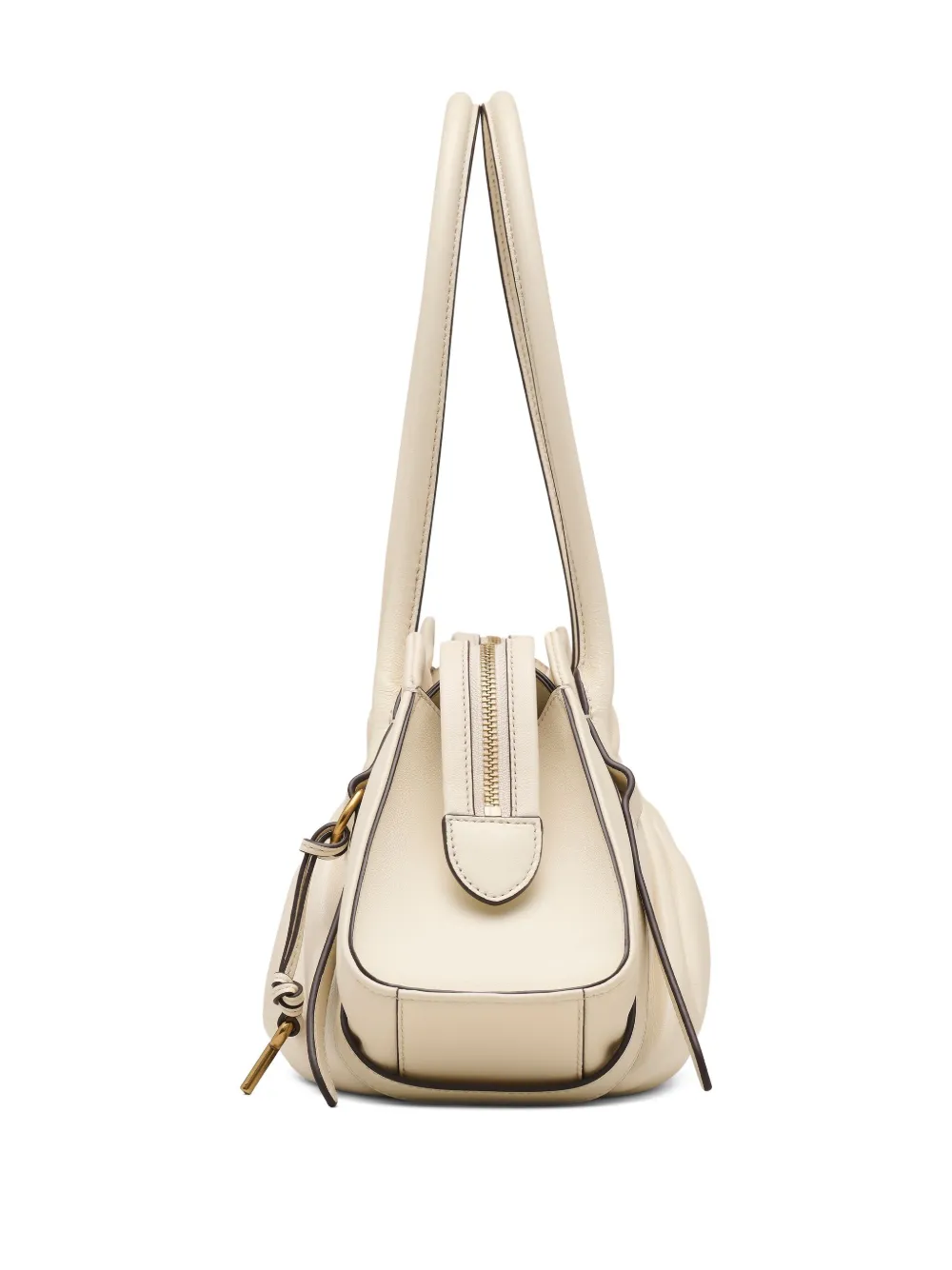 Белая кожаная верхняя ручка, застежка-молния, брелок для ключей, фурнитура золотистого цвета