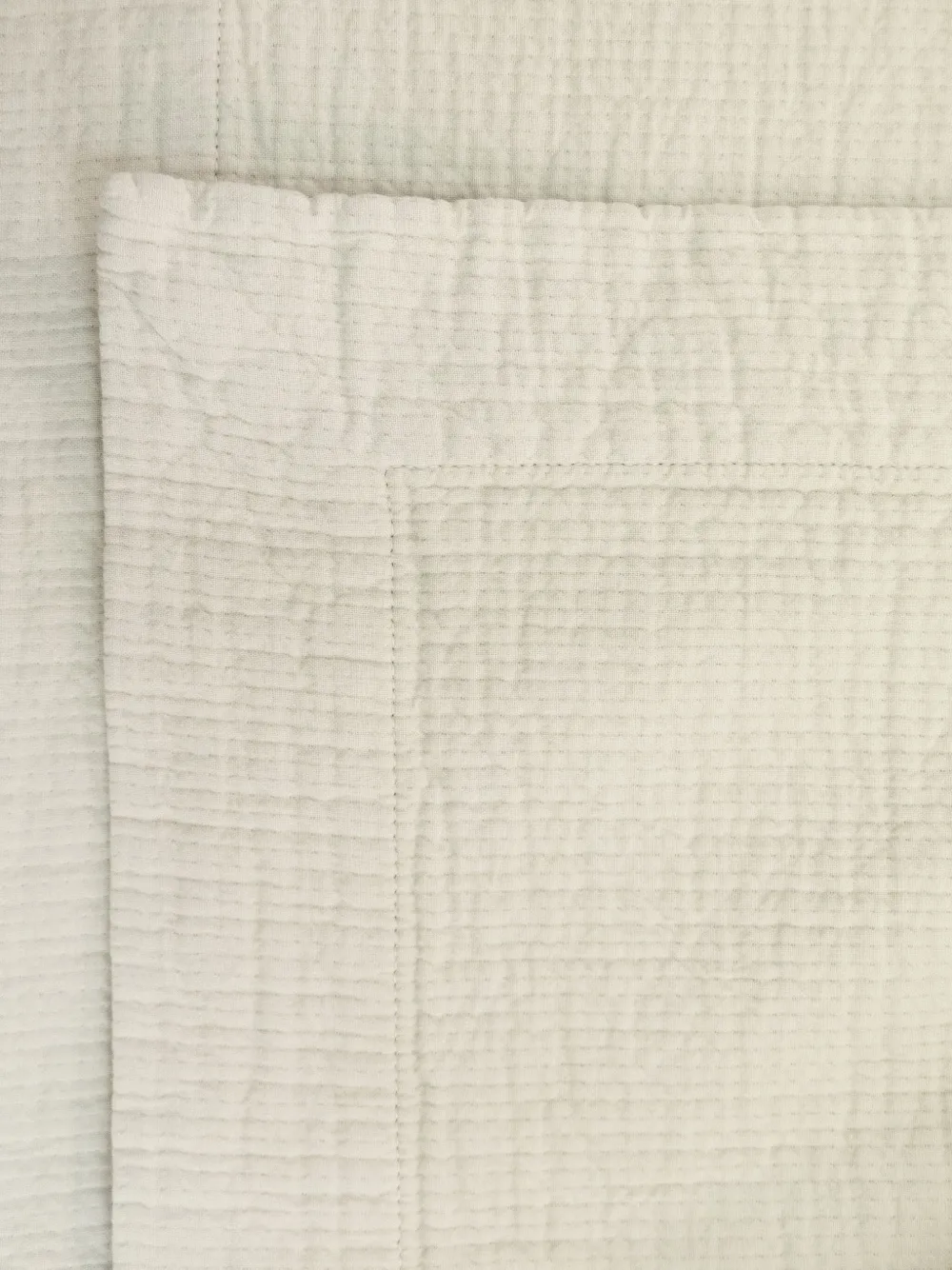 Текстурированный хлопок кремового цвета с двойной строчкой на кайме, прямоугольной формы, простого дизайна. Более подробную информацию о размерах этого товара см. на вкладке «Размер и посадка».
