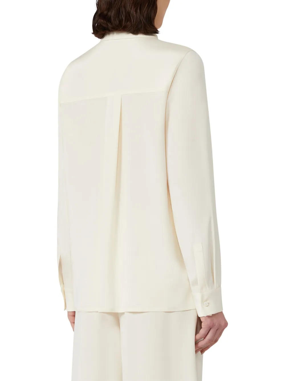 Шелк цвета слоновой кости, длинные рукава, кокетливый шов сзади, застежка на пуговицы спереди
