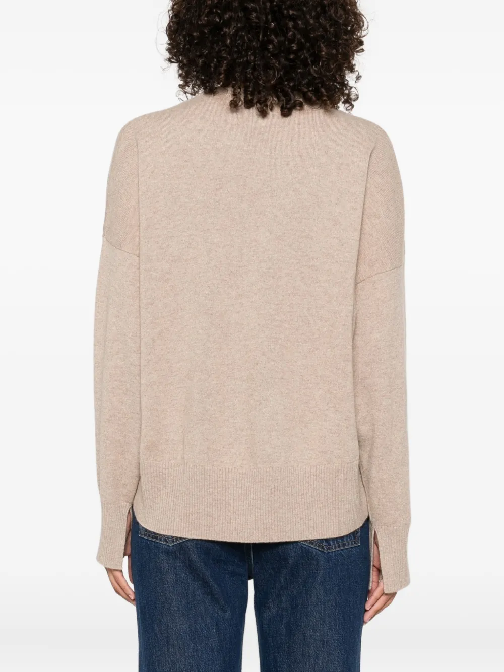 Бежевый кашемир, круглый вырез, длинные рукава, ребристые манжеты и подол