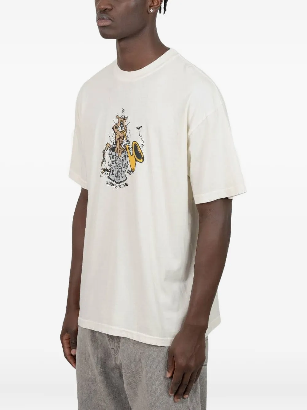 Кремовый хлопок с графическим принтом, короткие рукава, круглый вырез горловины