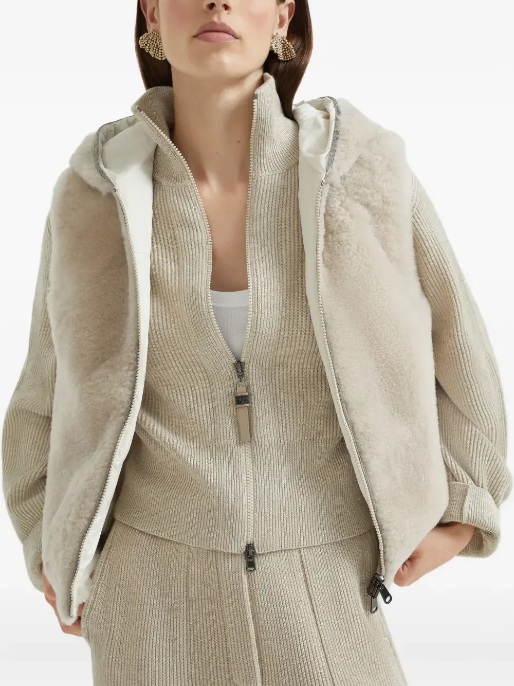 Свитер в рубчик на молнии Brunello Cucinelli, нейтральный