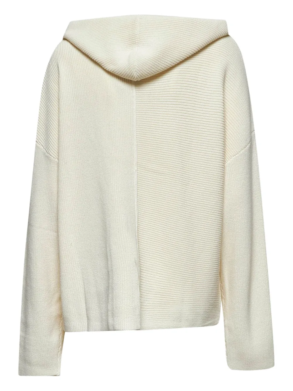 Белый капюшон, спущенные плечи, ребристый трикотаж, длинные рукава